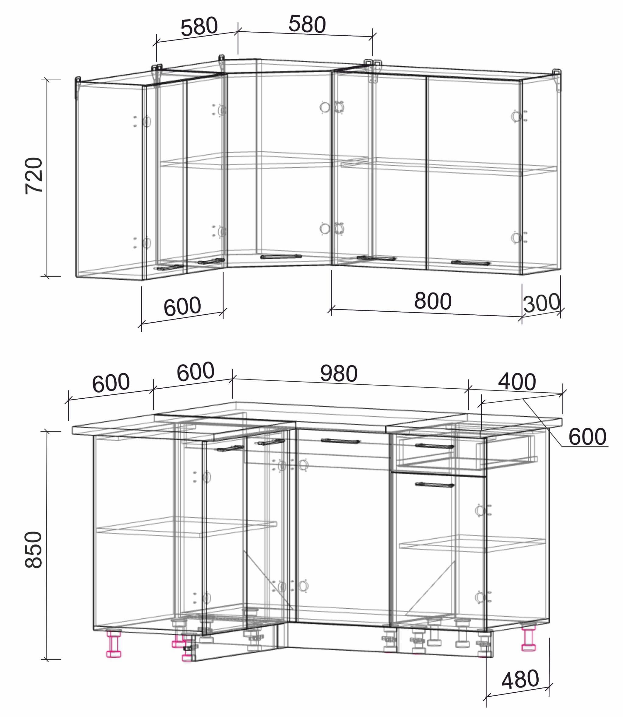 • шкаф нижний под духовой шкаф шириной 600 мм;