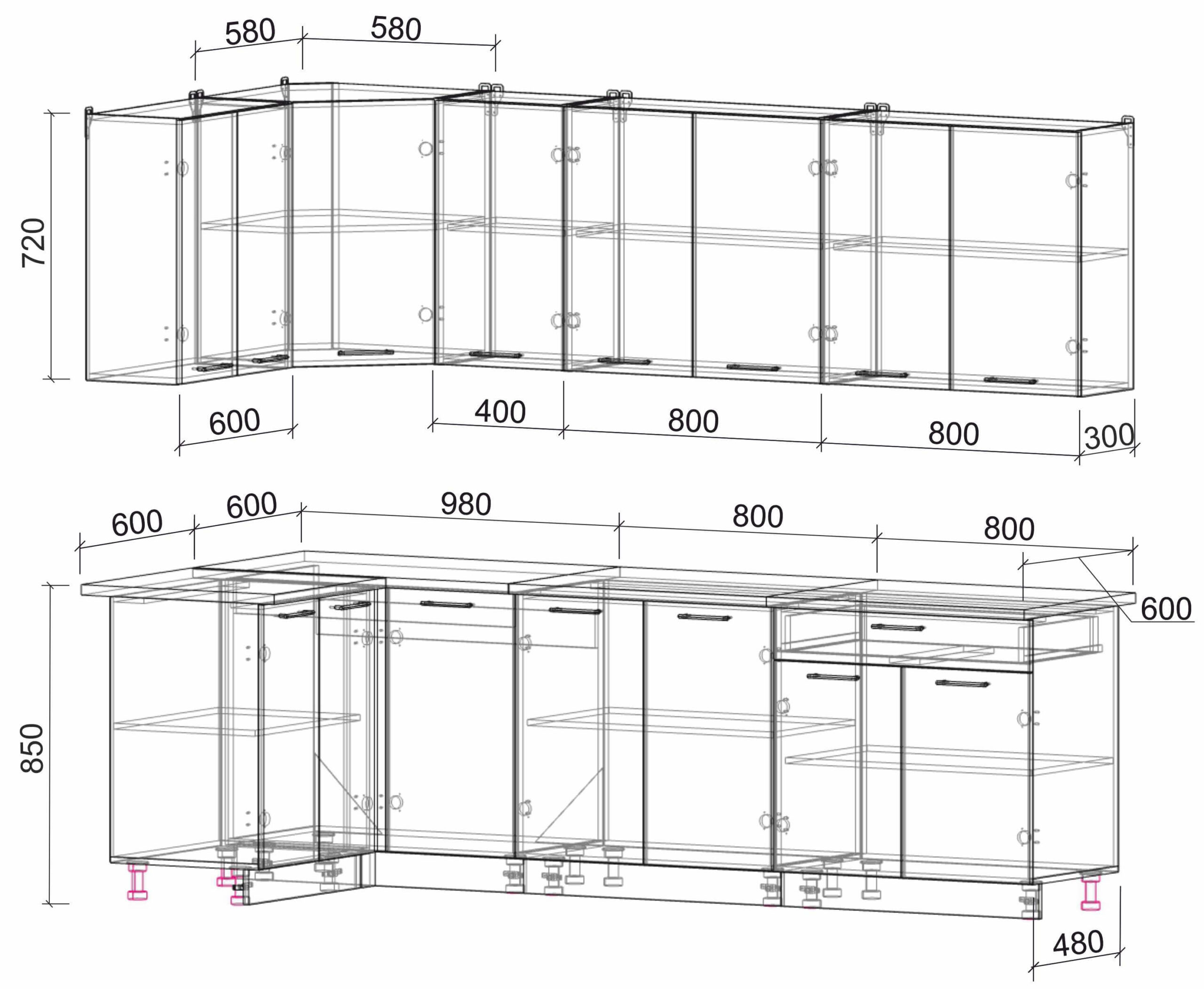 Высота нижних шкафов