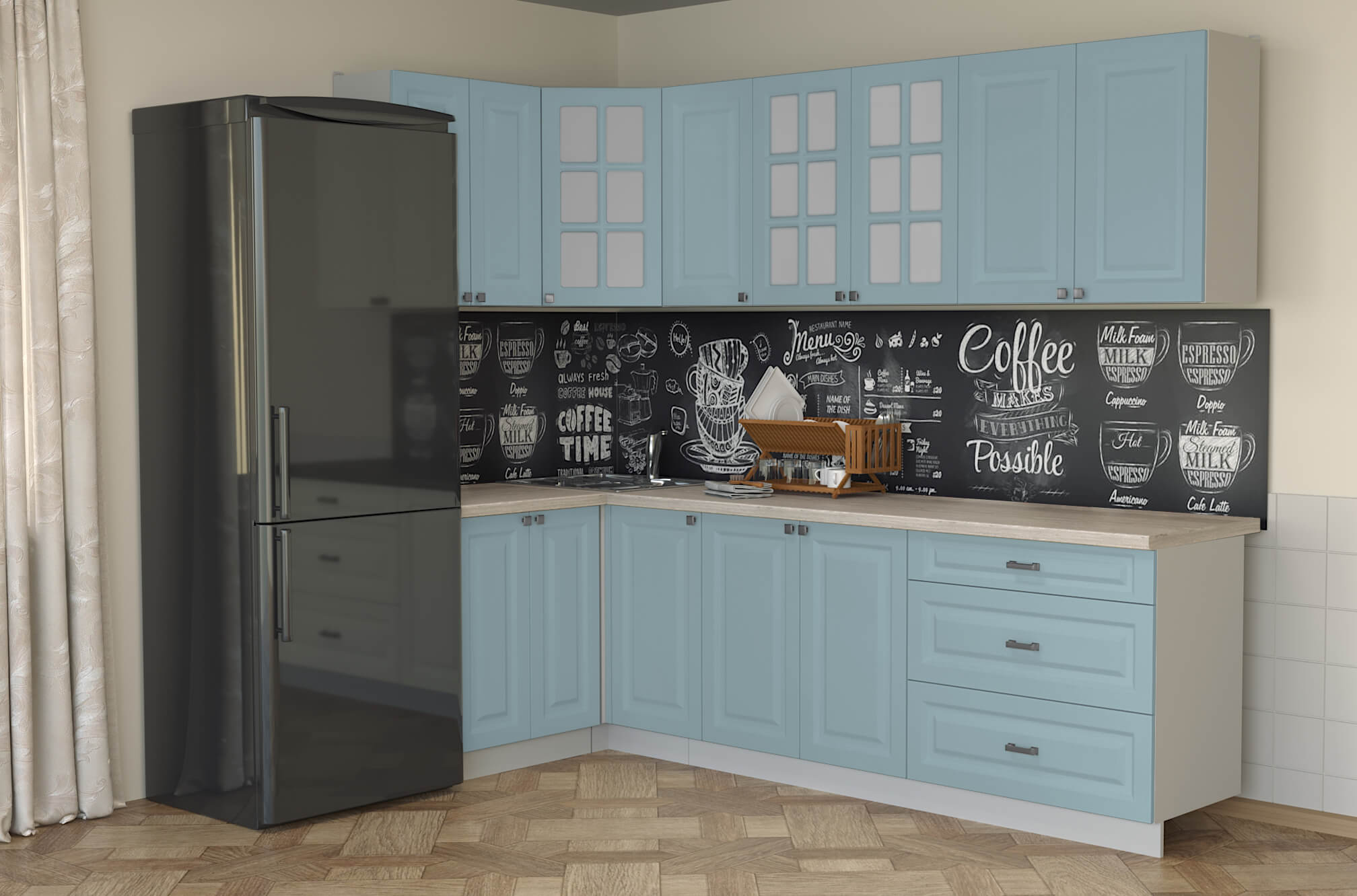 • Заказать кухню Мила «Деко» можно в виде готового набора и по модулям;