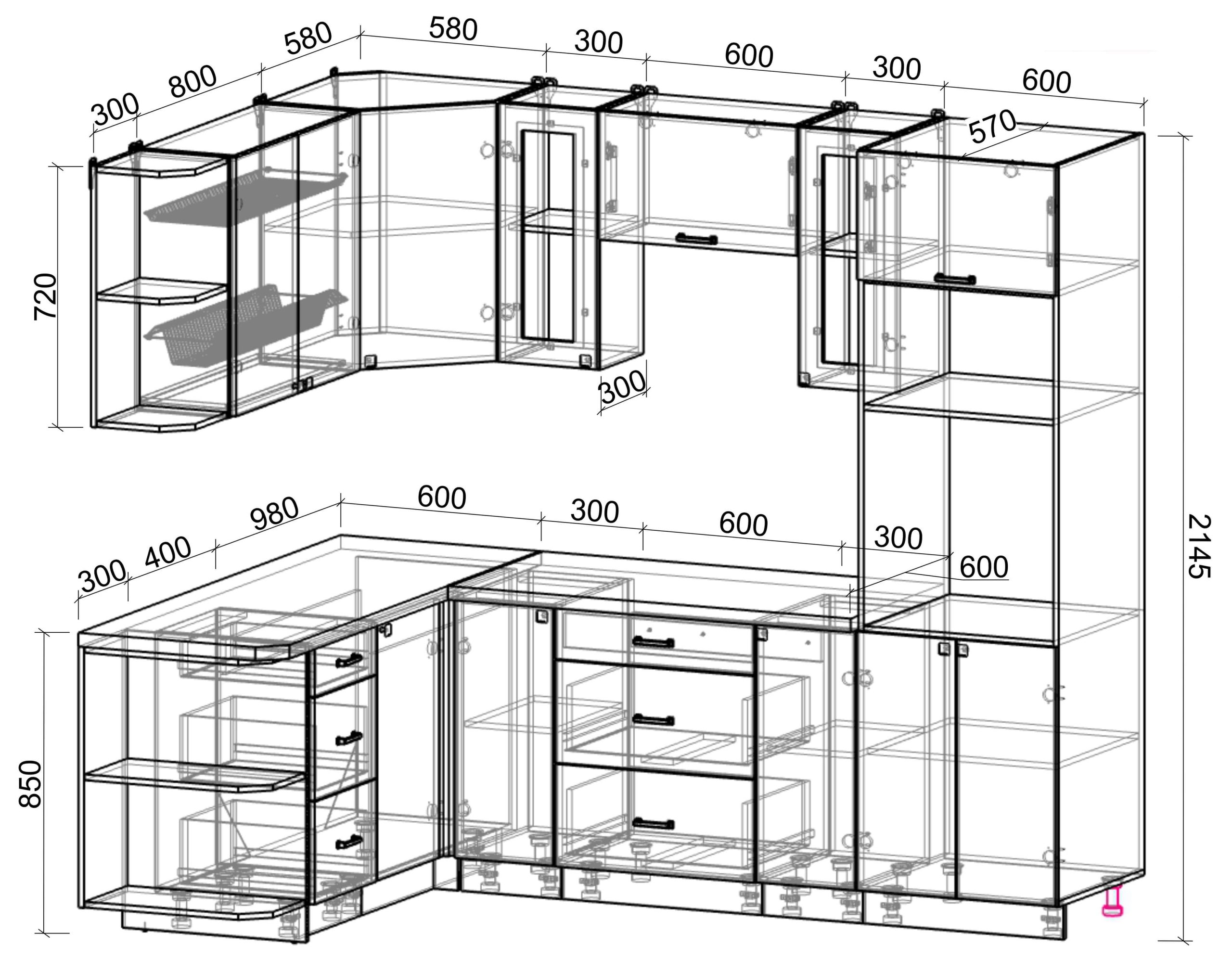 • шкаф нижний под духовой шкаф шириной 600 мм;