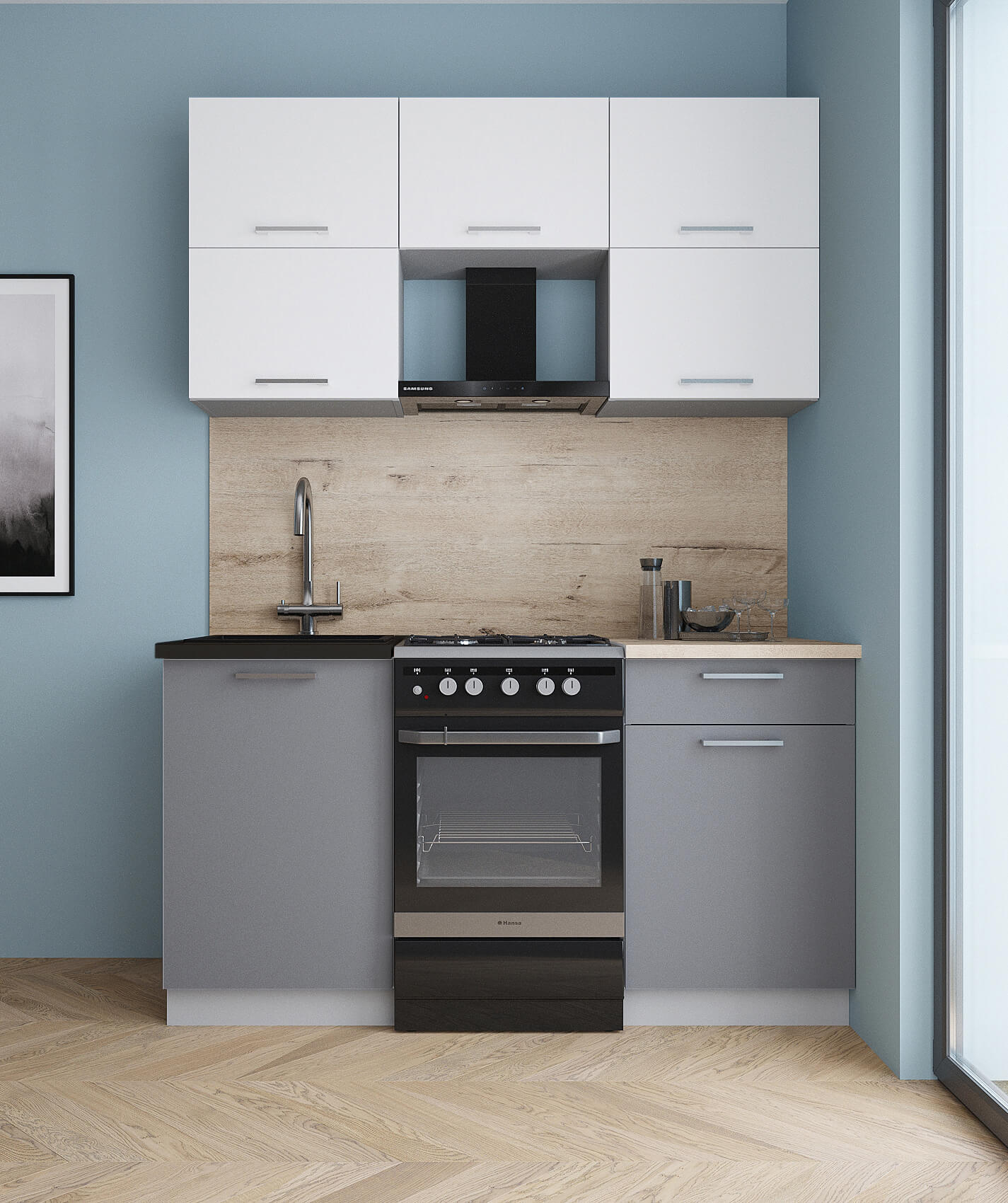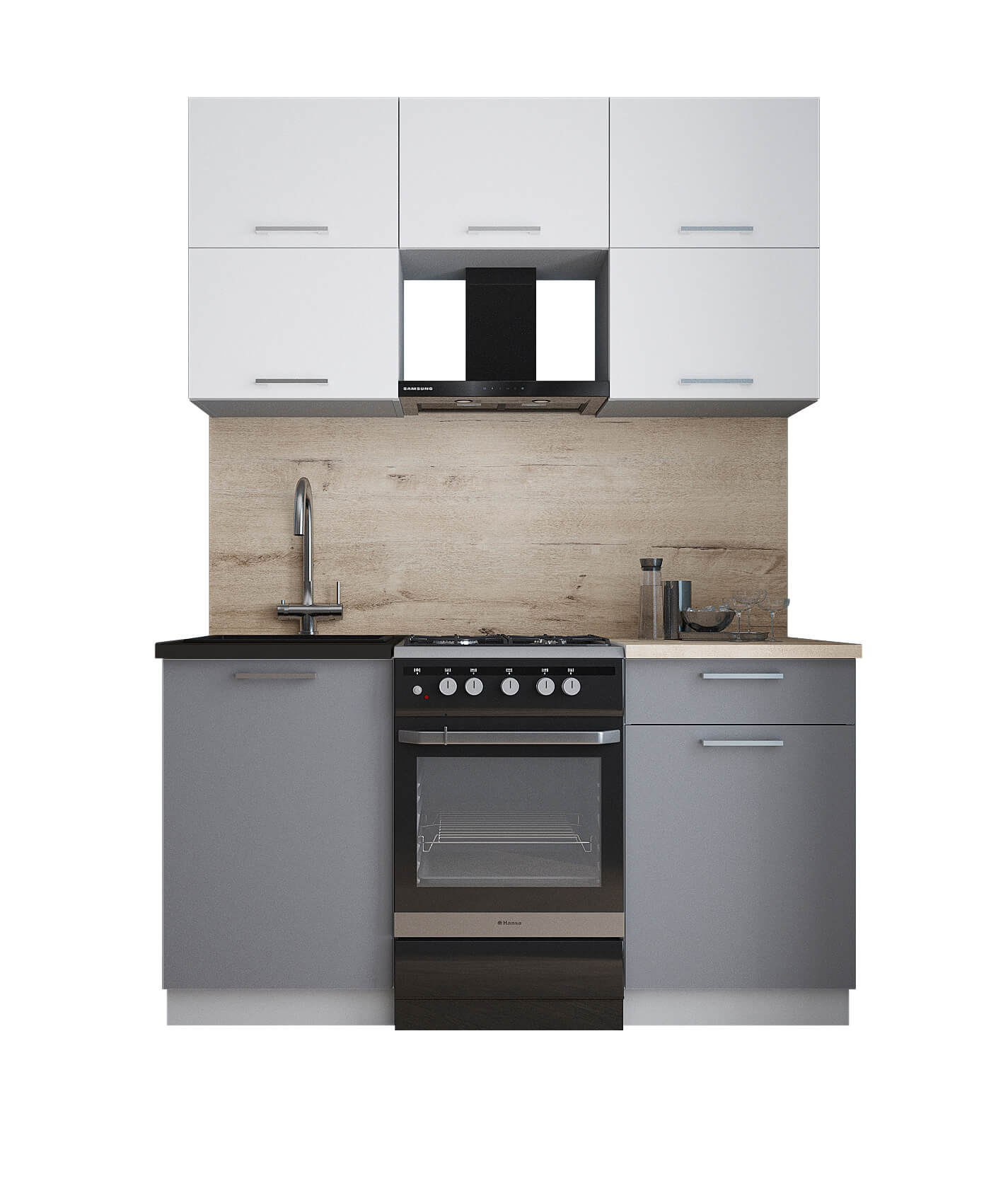 ГОТОВАЯ КУХНЯ ГЛОСС 50-15 (БЕЛЫЙ СОФТ/ СЕРЫЙ СОФТ) - Yuta.by