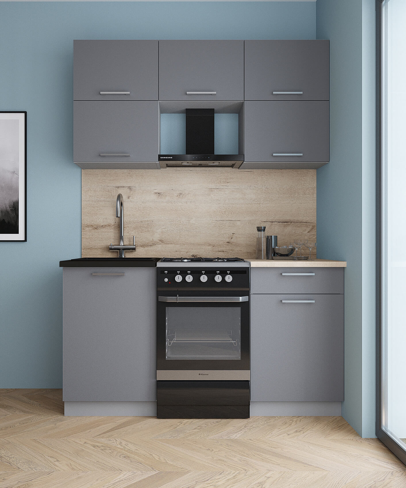 ГОТОВАЯ КУХНЯ ГЛОСС 50-15 (ПЕПЕЛ СОФТ/ КЕРАМИКА) - Yuta.by