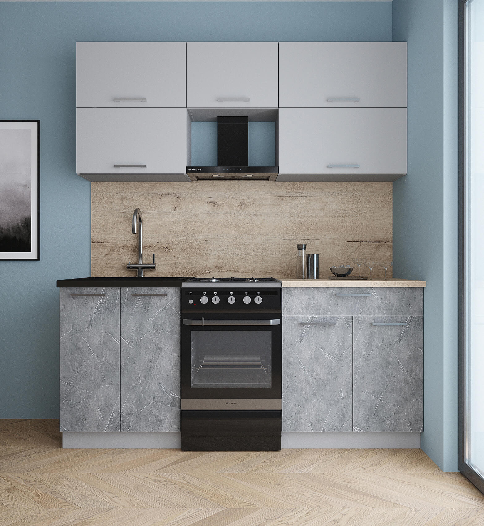 ГОТОВАЯ КУХНЯ ГЛОСС 50-18 (ПЕПЕЛ СОФТ/ КЕРАМИКА) - Yuta.by
