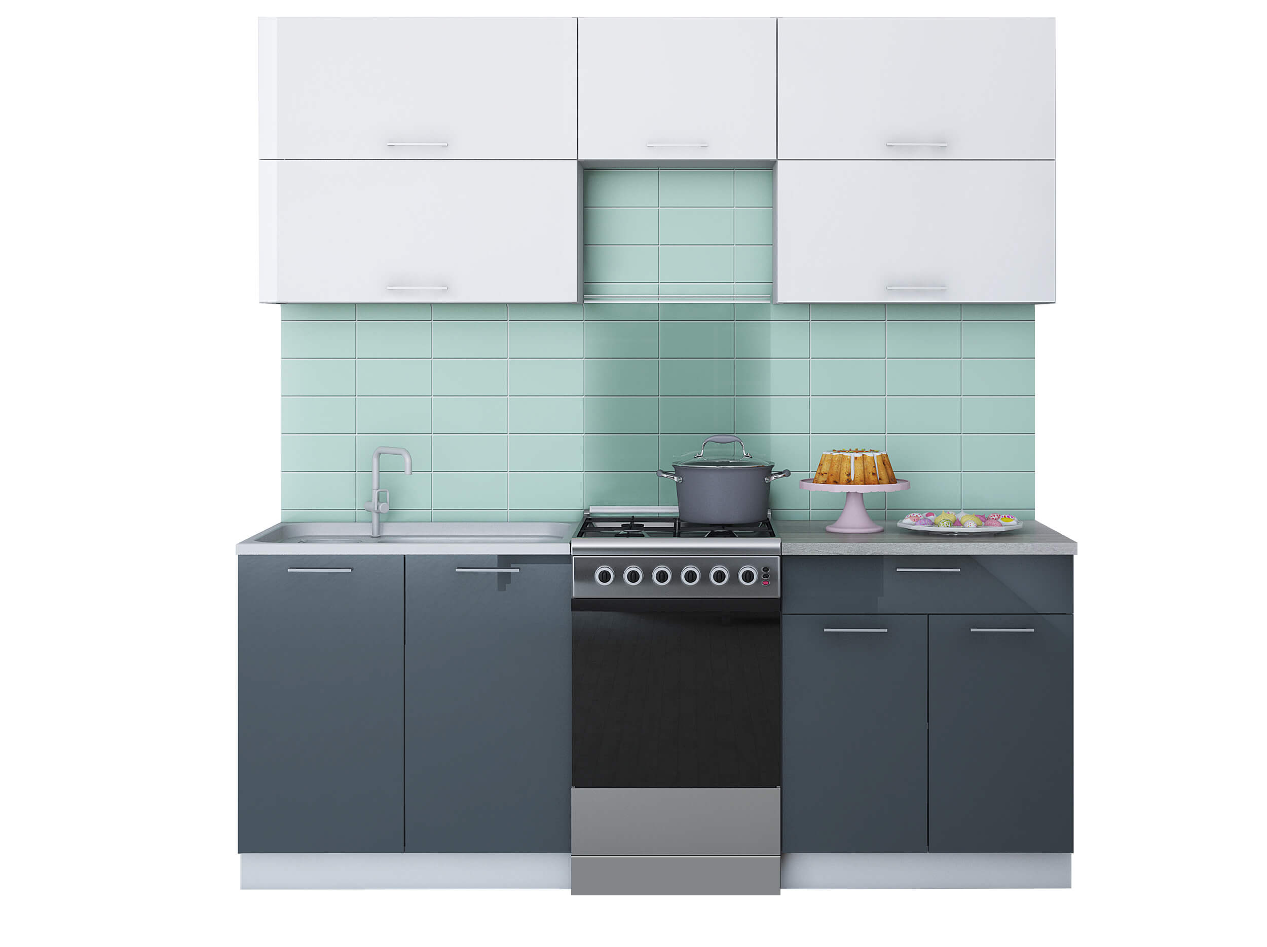 ГОТОВАЯ КУХНЯ ГЛОСС 50-20 (БЕЛЫЙ/ АСФАЛЬТ) - Yuta.by