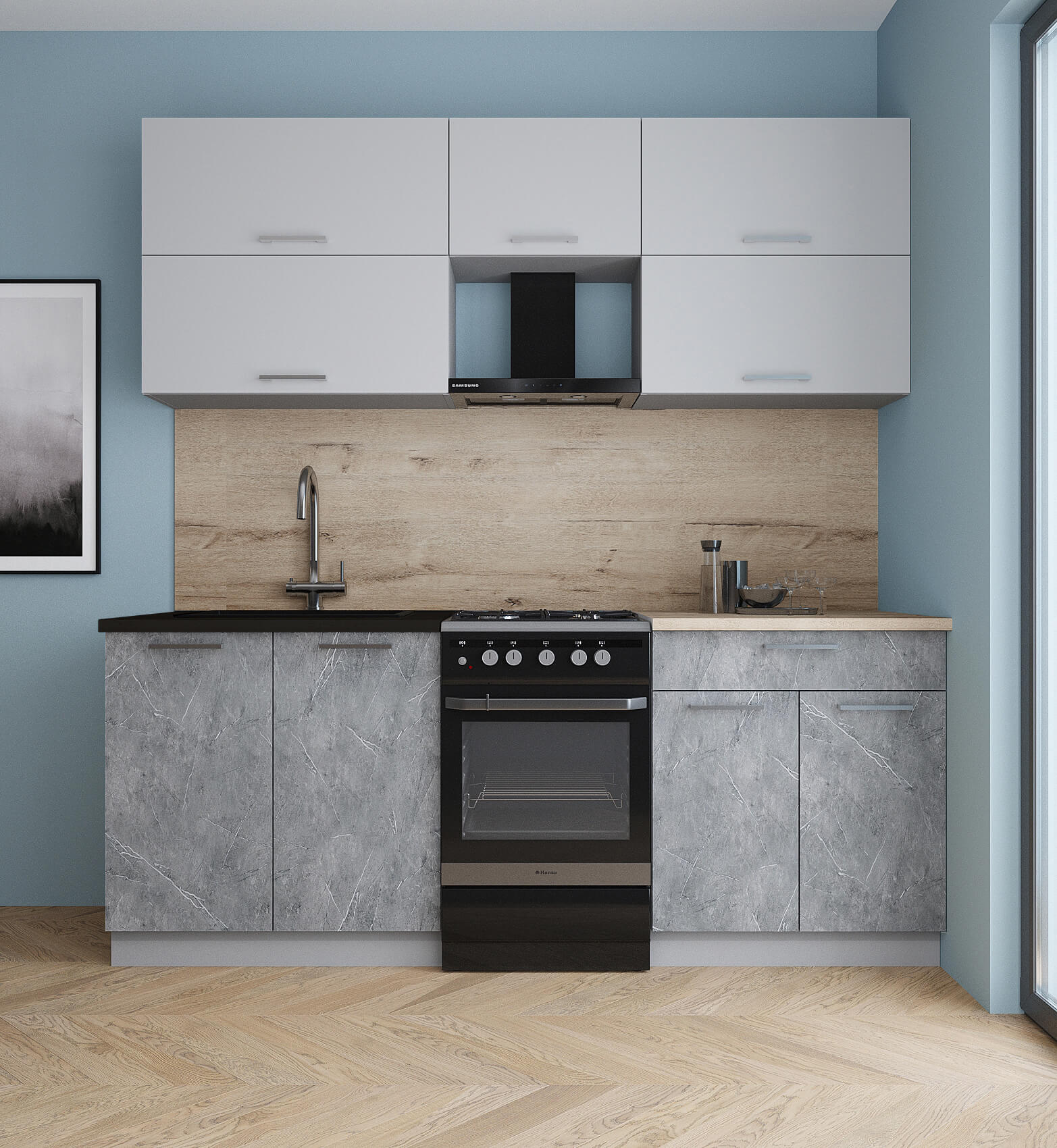 ГОТОВАЯ КУХНЯ ГЛОСС 50-20 (ПЕПЕЛ СОФТ/ КЕРАМИКА) - Yuta.by