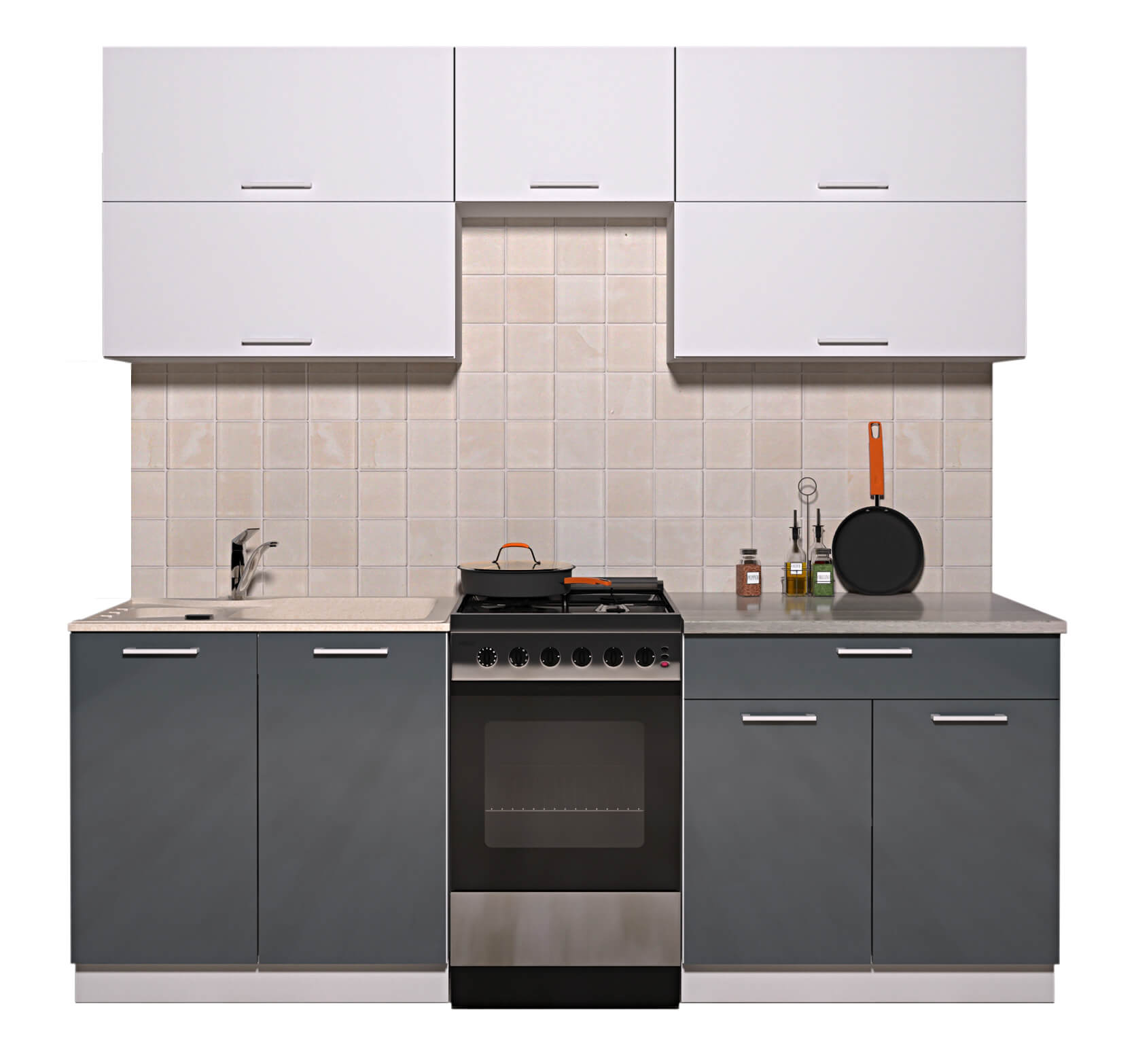 ГОТОВАЯ КУХНЯ ГЛОСС 50-21 (БЕЛЫЙ/ АСФАЛЬТ) - Yuta.by
