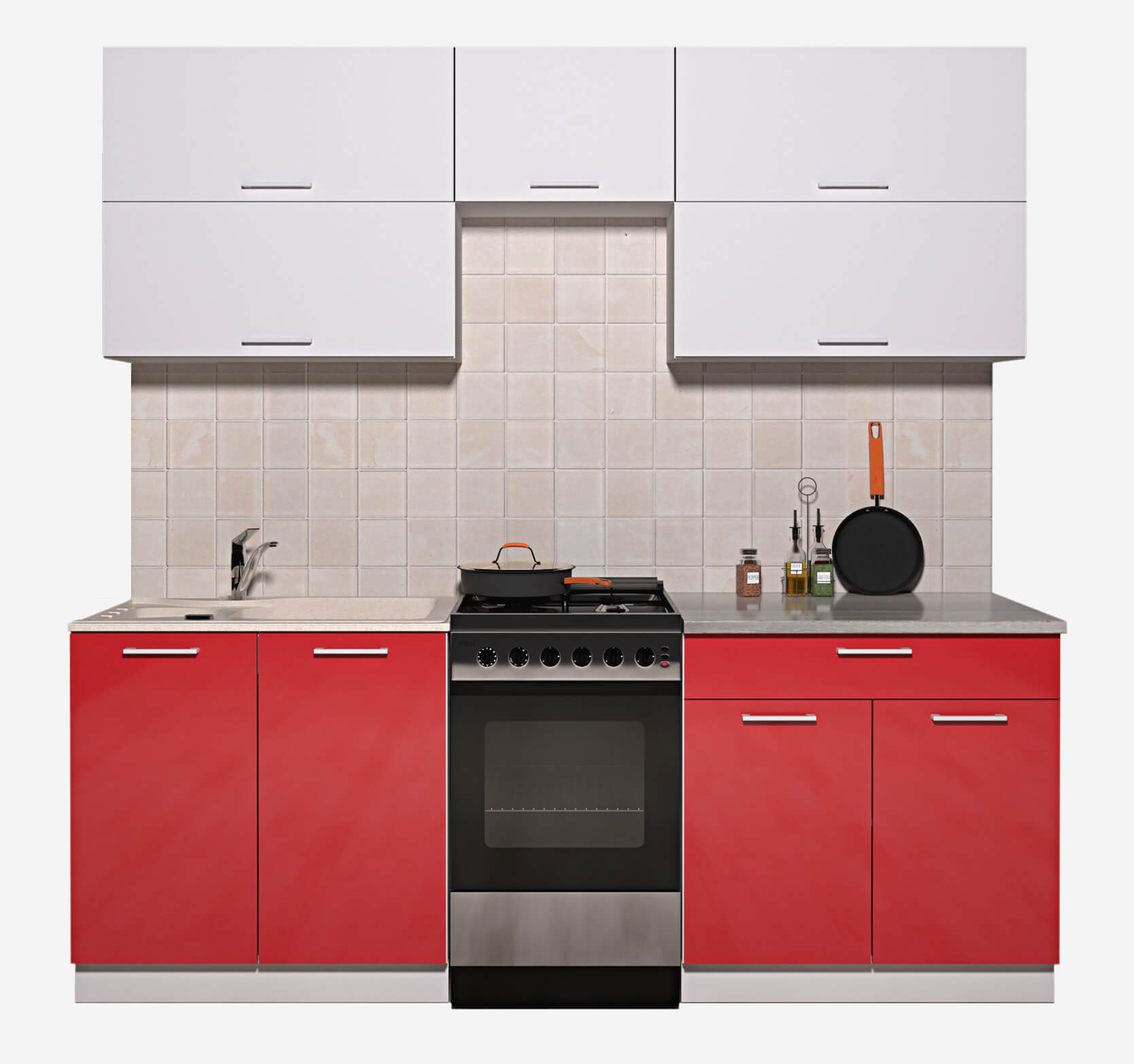 ГОТОВАЯ КУХНЯ ГЛОСС 50-21 (БЕЛЫЙ/ КРАСНЫЙ) - Yuta.by