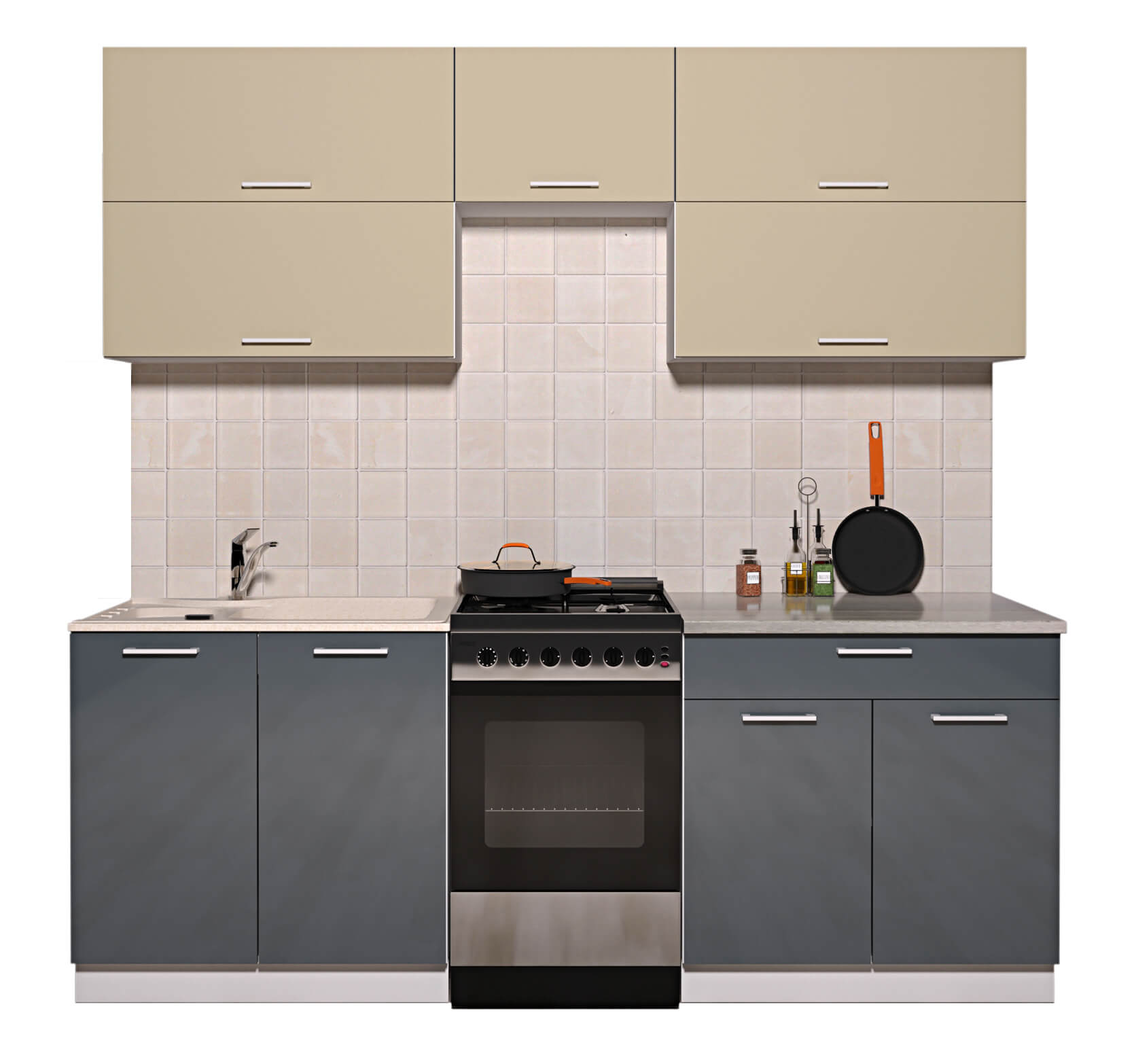 ГОТОВАЯ КУХНЯ ГЛОСС 50-21 (ВАНИЛЬ/ АСФАЛЬТ) - Yuta.by