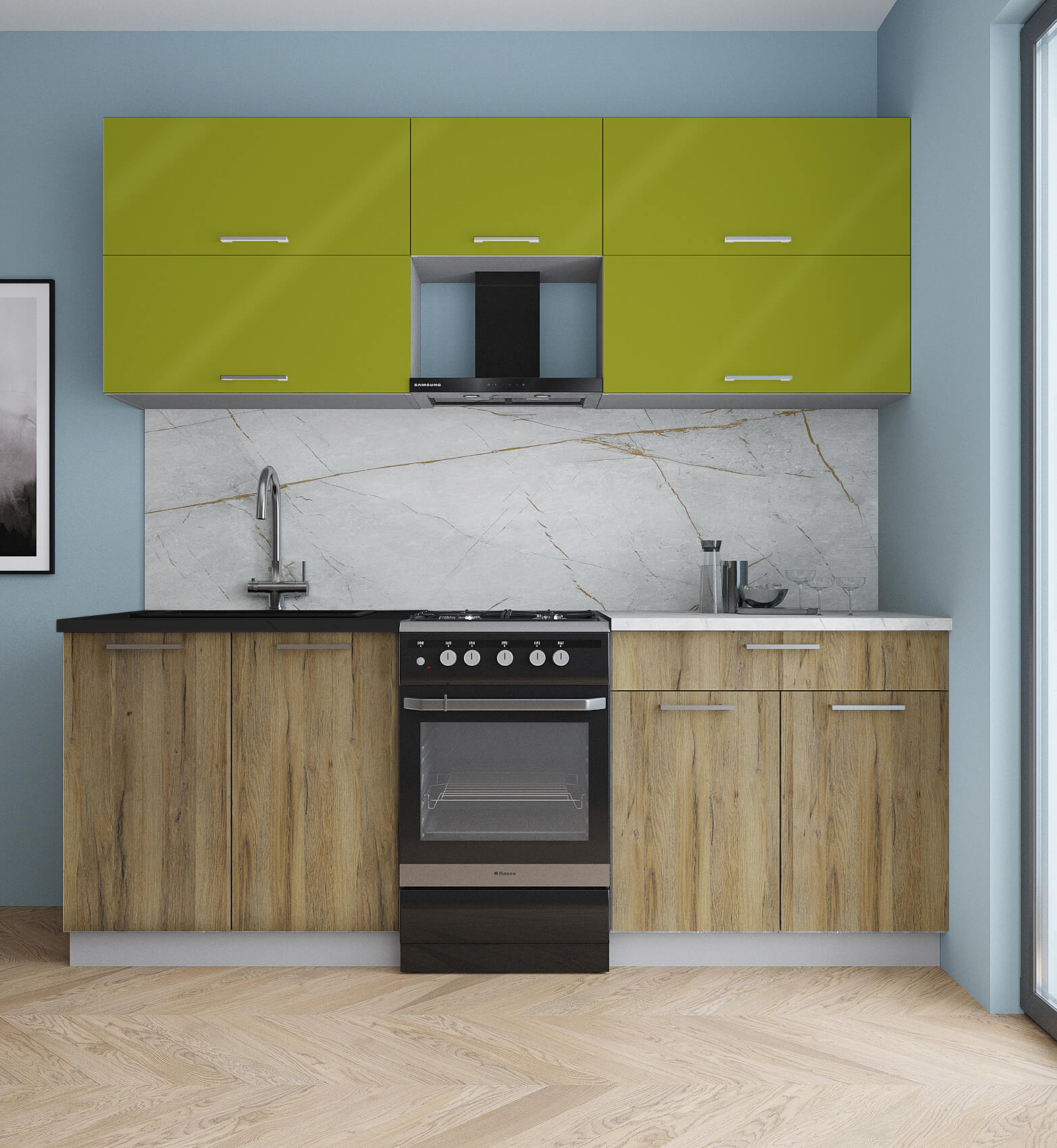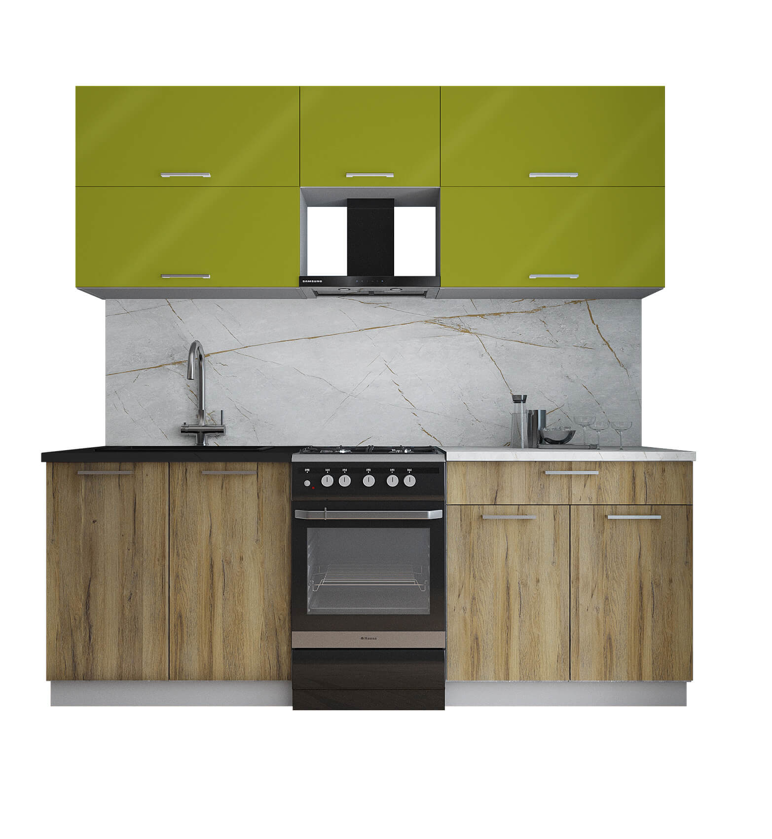 ГОТОВАЯ КУХНЯ ГЛОСС 50-21 (ЯБЛОКО ГЛЯНЕЦ / ДУБ ВОТАН) - Yuta.by