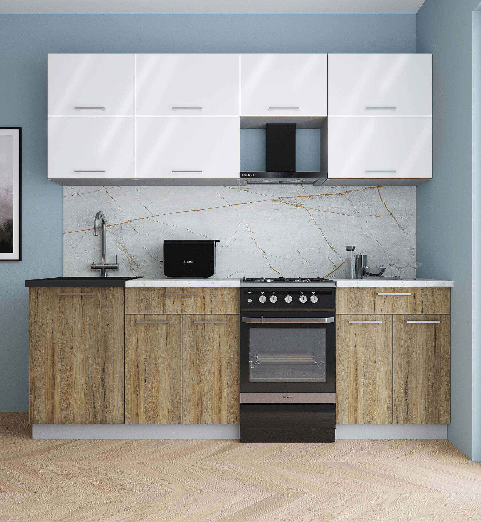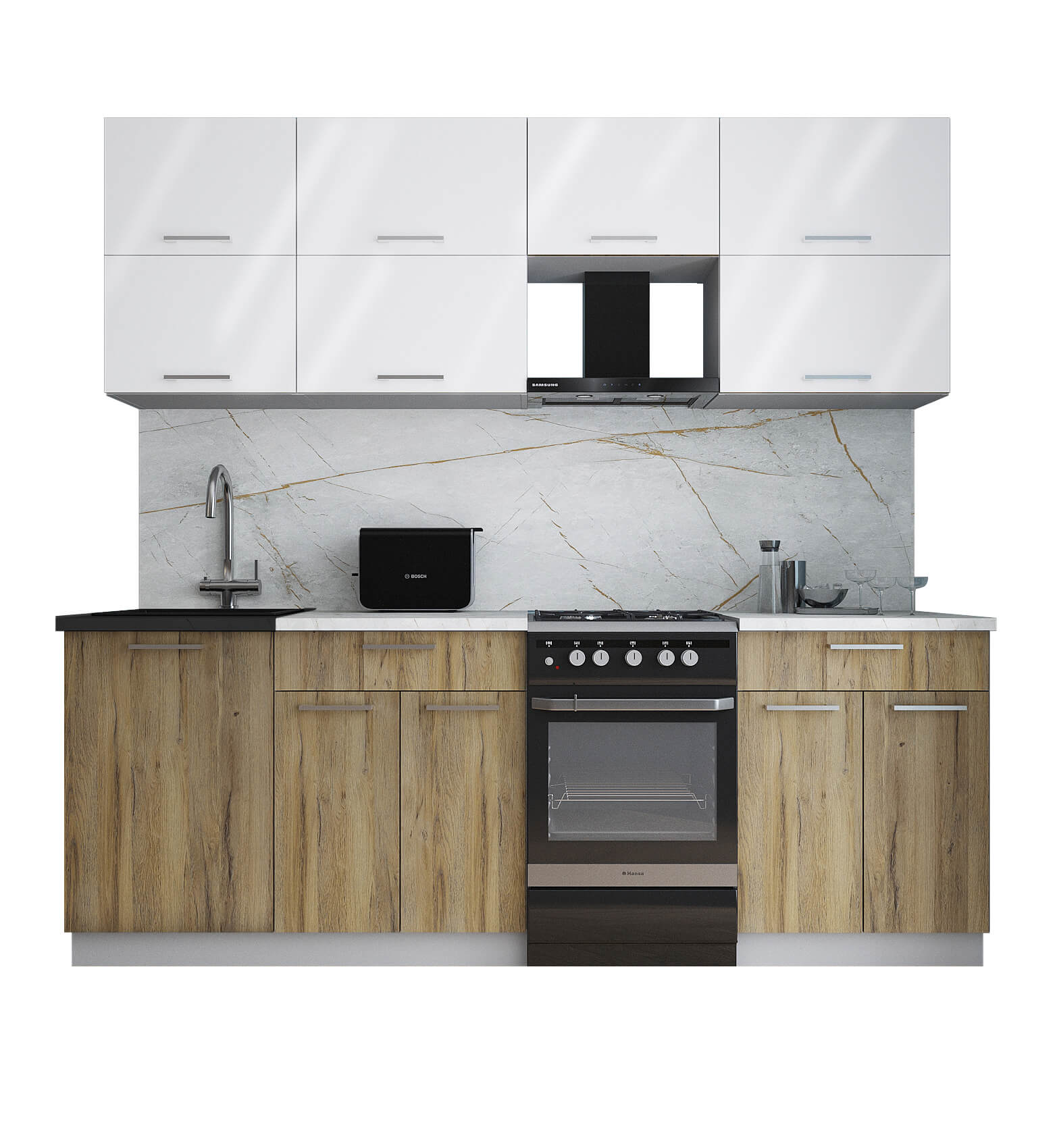 ГОТОВАЯ КУХНЯ ГЛОСС 50-22 (БЕЛЫЙ ГЛЯНЕЦ/ ДУБ ВОТАН) - Yuta.by