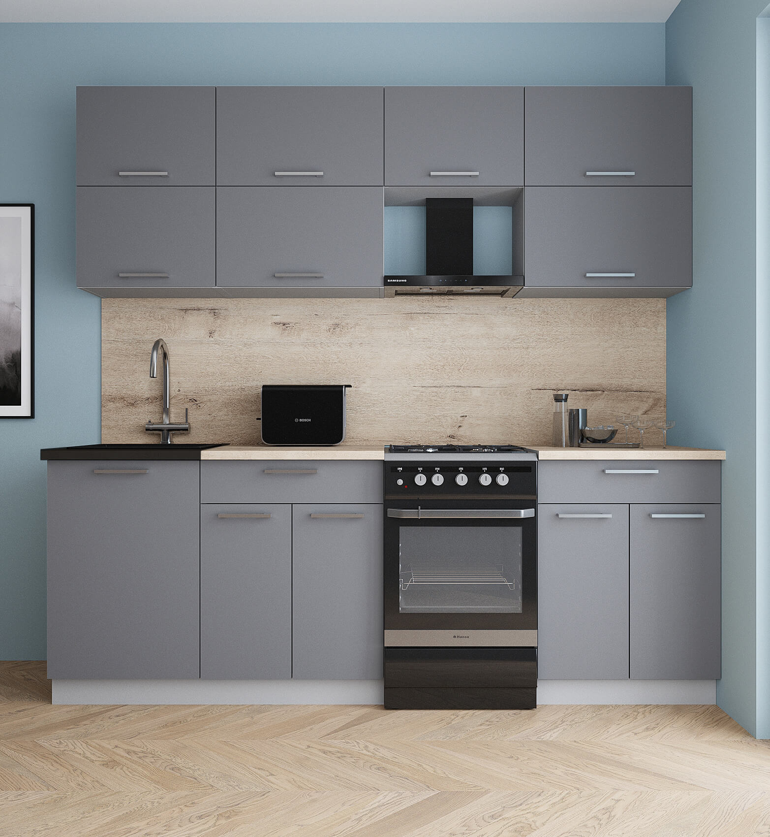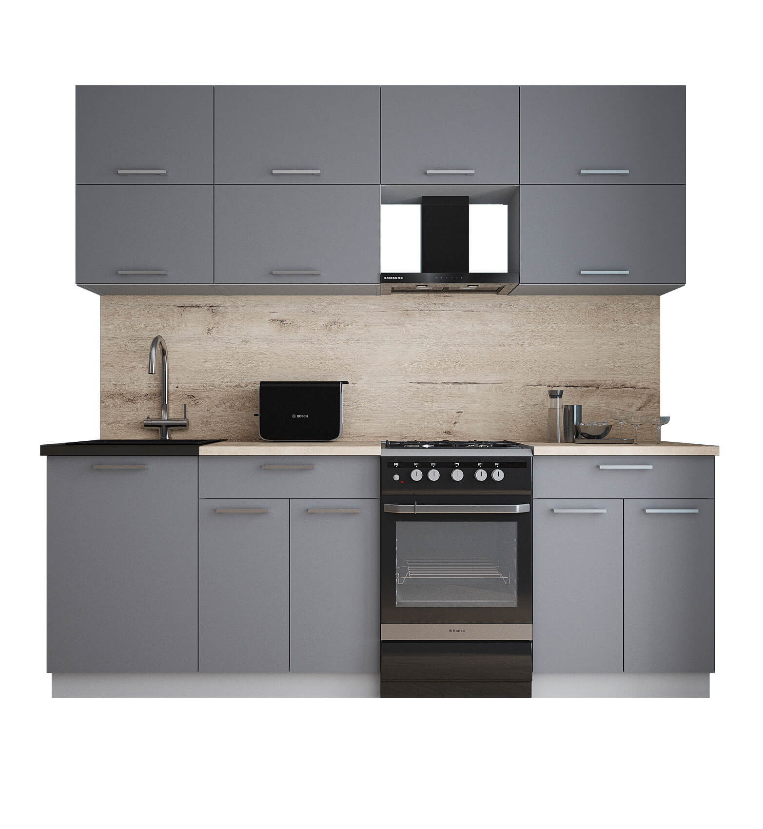 ГОТОВАЯ КУХНЯ ГЛОСС 50-22 (СЕРЫЙ СОФТ/ СЕРЫЙ СОФТ) - Yuta.by