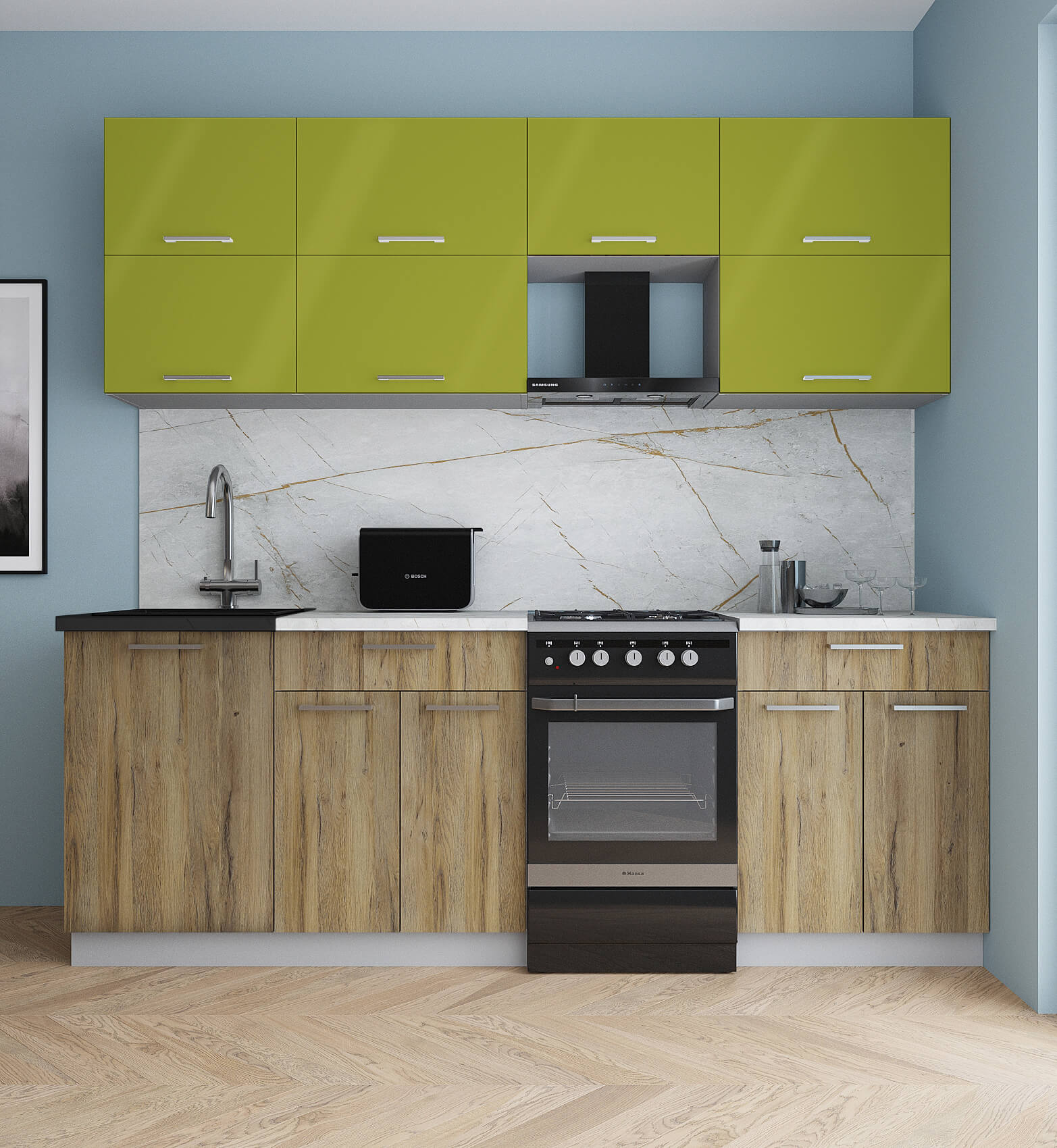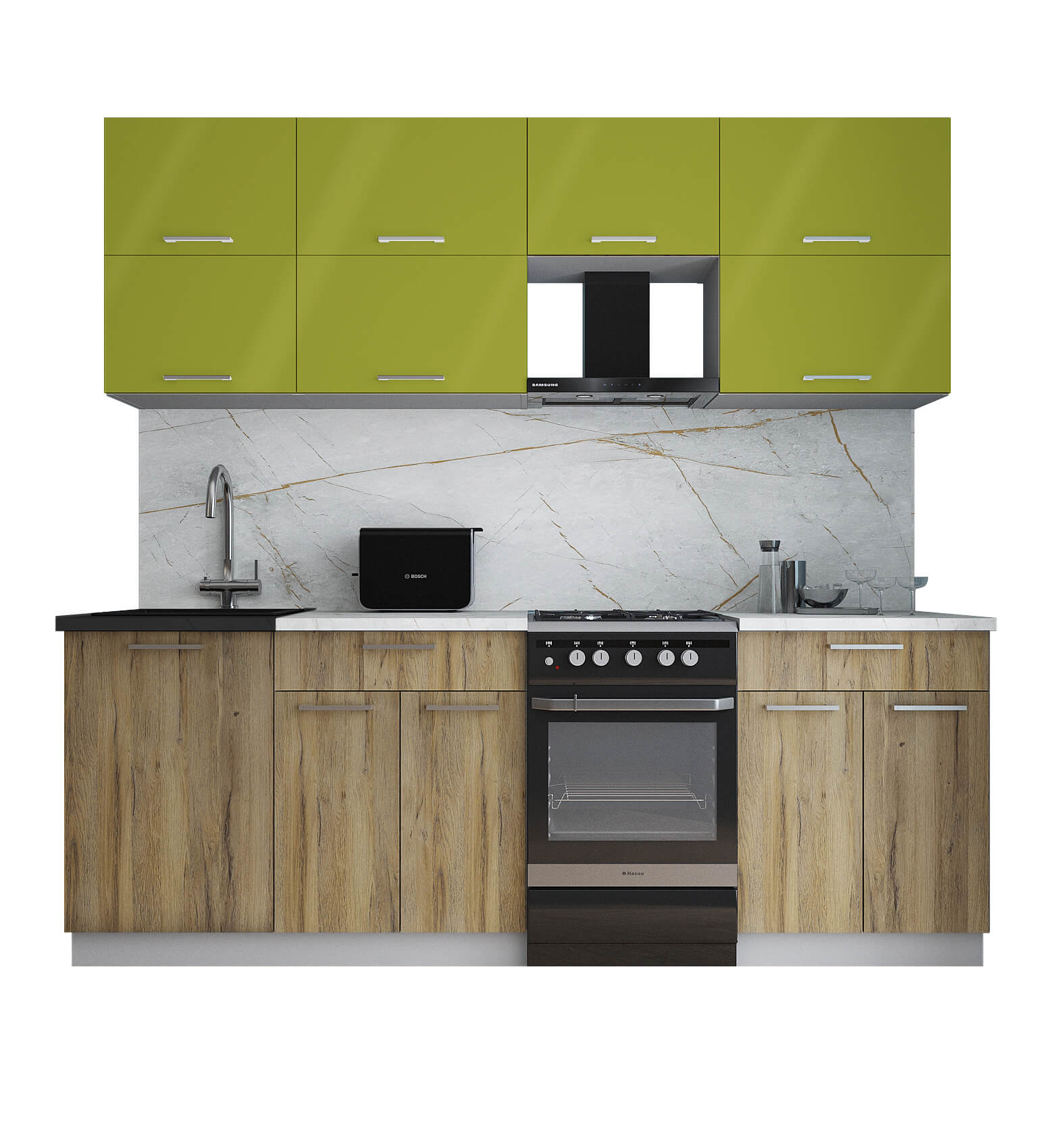 ГОТОВАЯ КУХНЯ ГЛОСС 50-22 (ЯБЛОКО ГЛЯНЕЦ/ ДУБ ВОТАН) - Yuta.by
