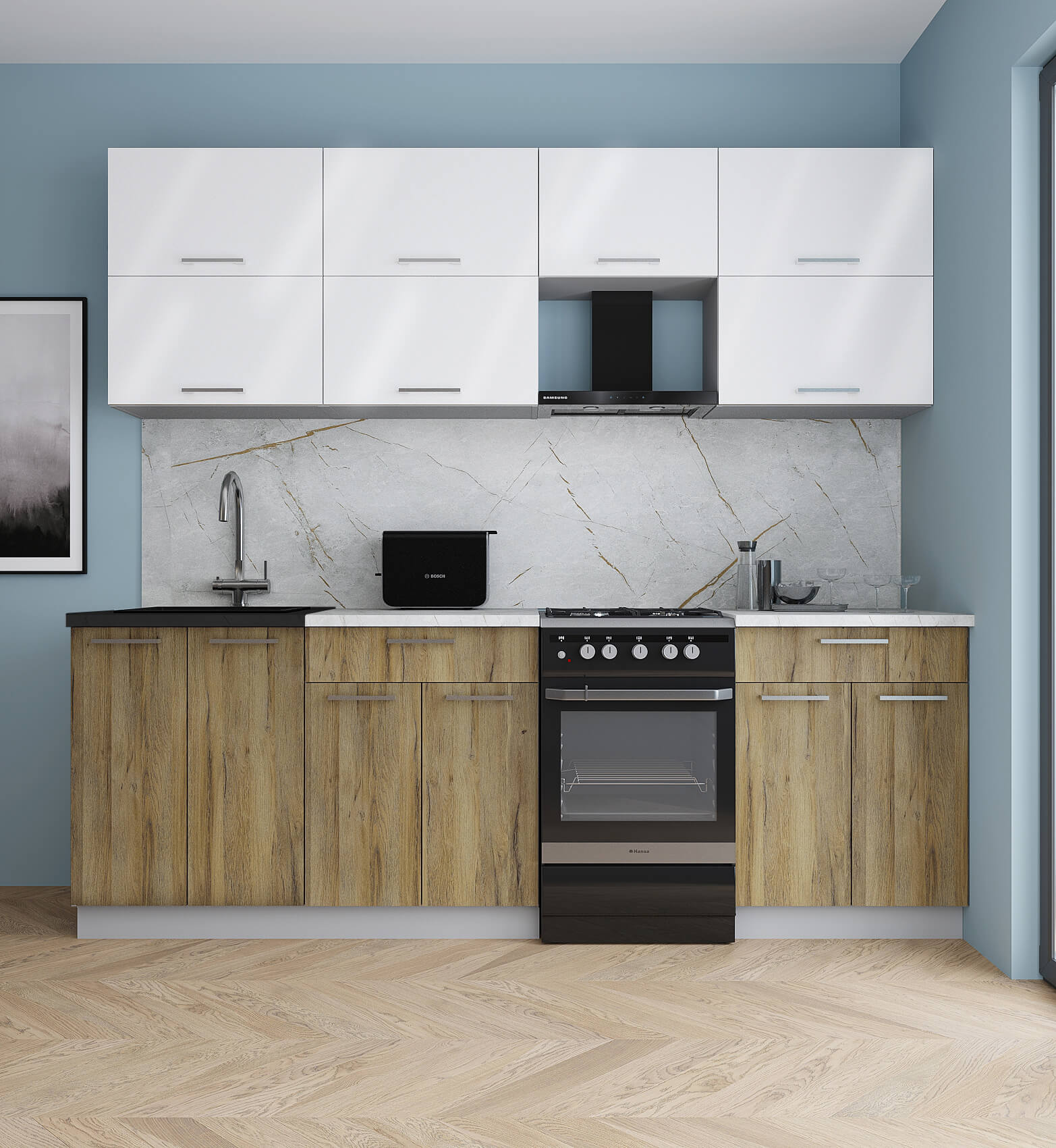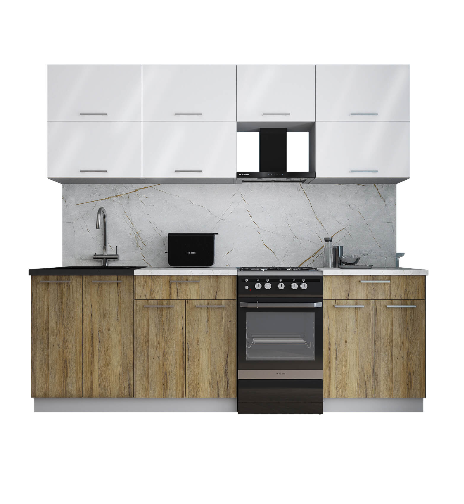 ГОТОВАЯ КУХНЯ ГЛОСС 50-23 (БЕЛЫЙ ГЛЯНЕЦ/ ДУБ ВОТАН) - Yuta.by