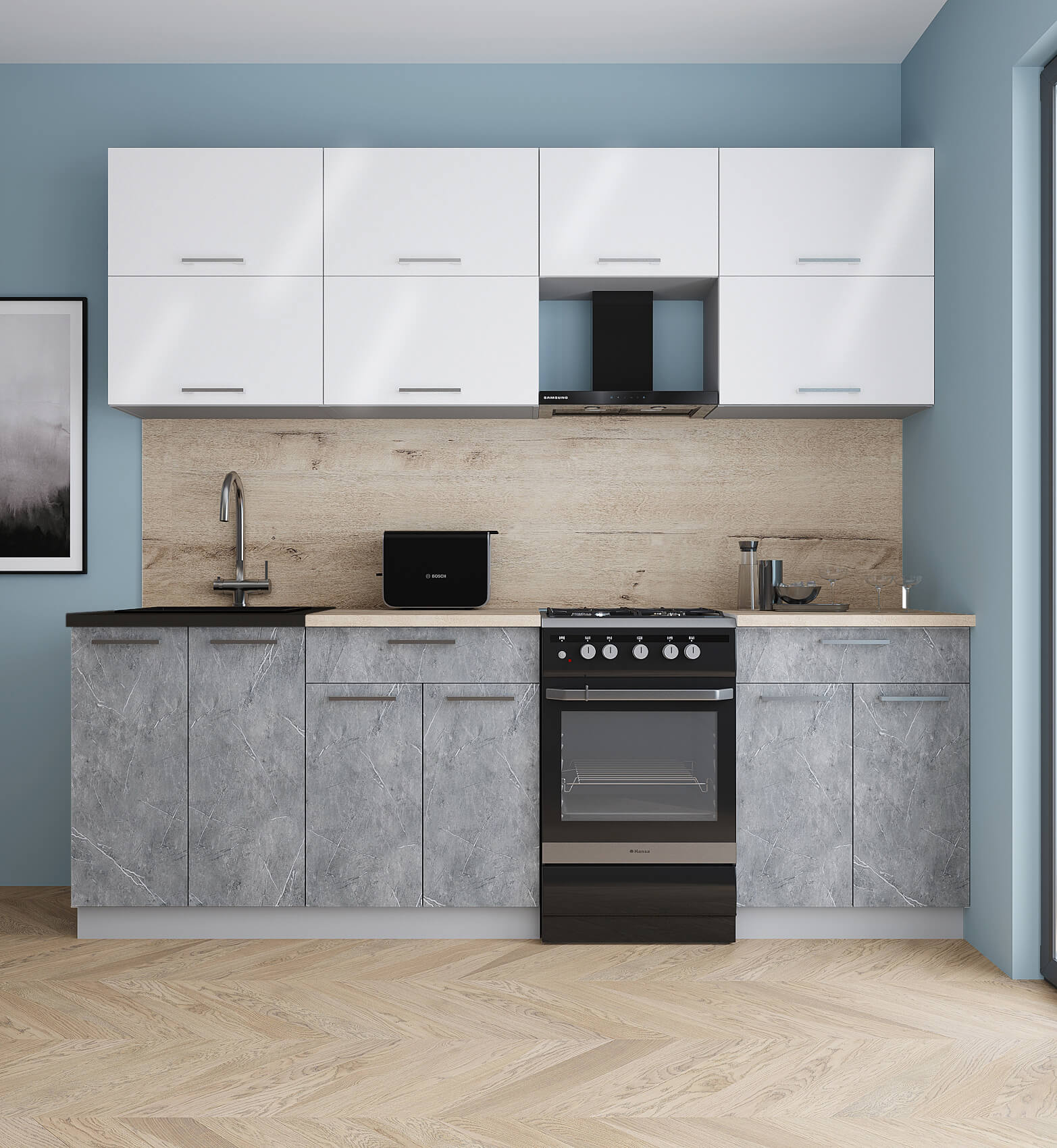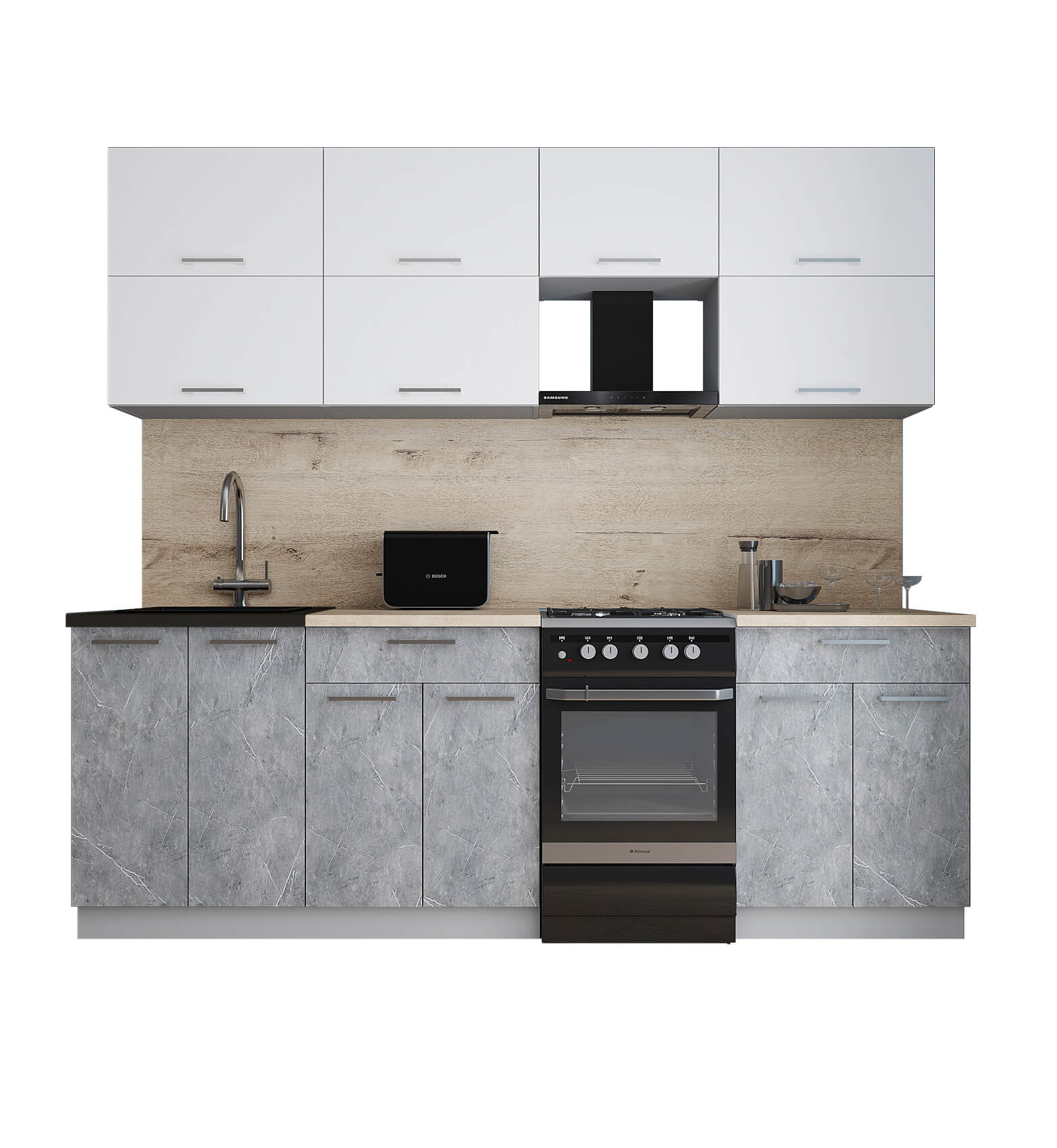 ГОТОВАЯ КУХНЯ ГЛОСС 50-23 (БЕЛЫЙ ГЛЯНЕЦ/ КЕРАМИКА) - Yuta.by