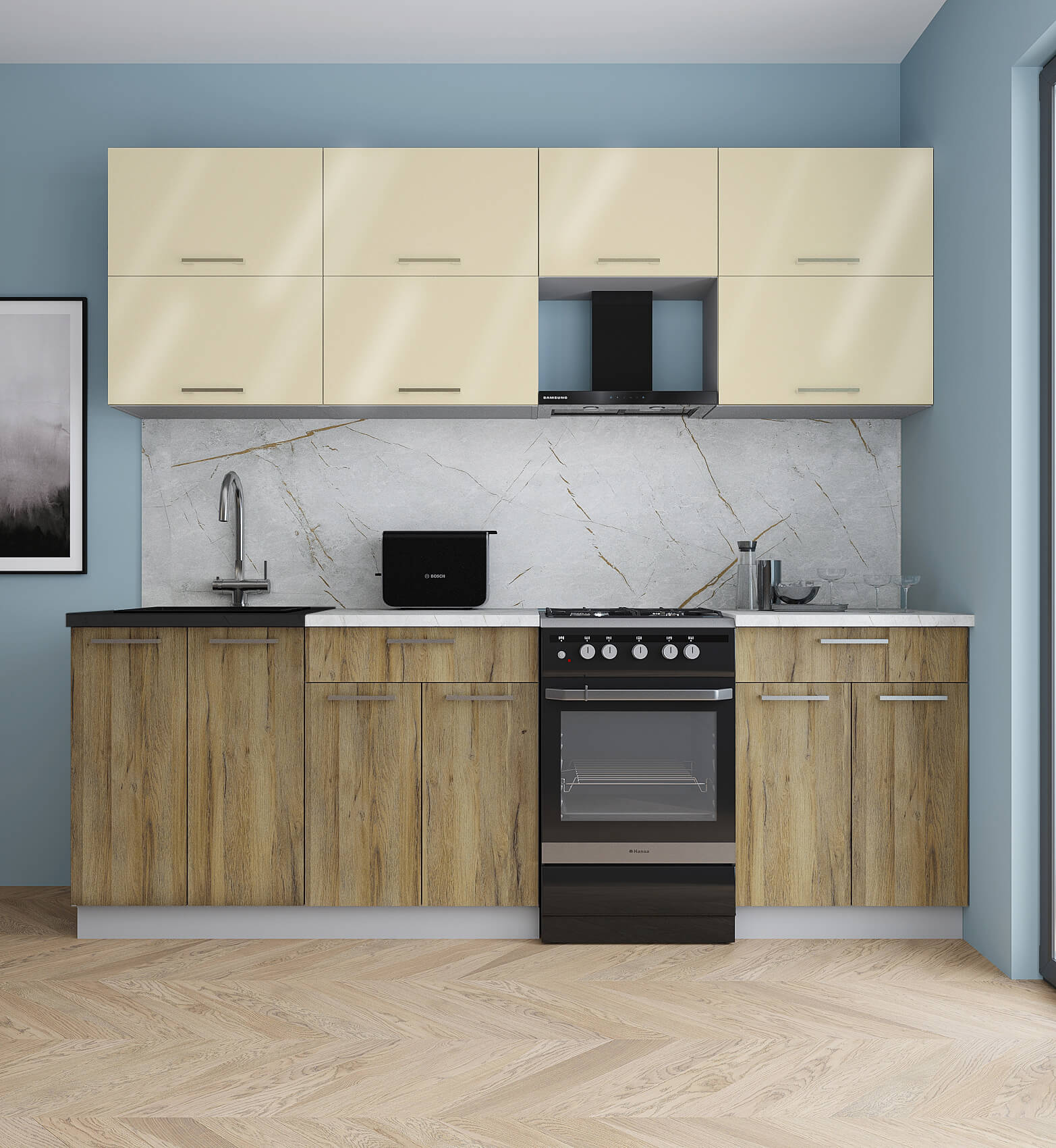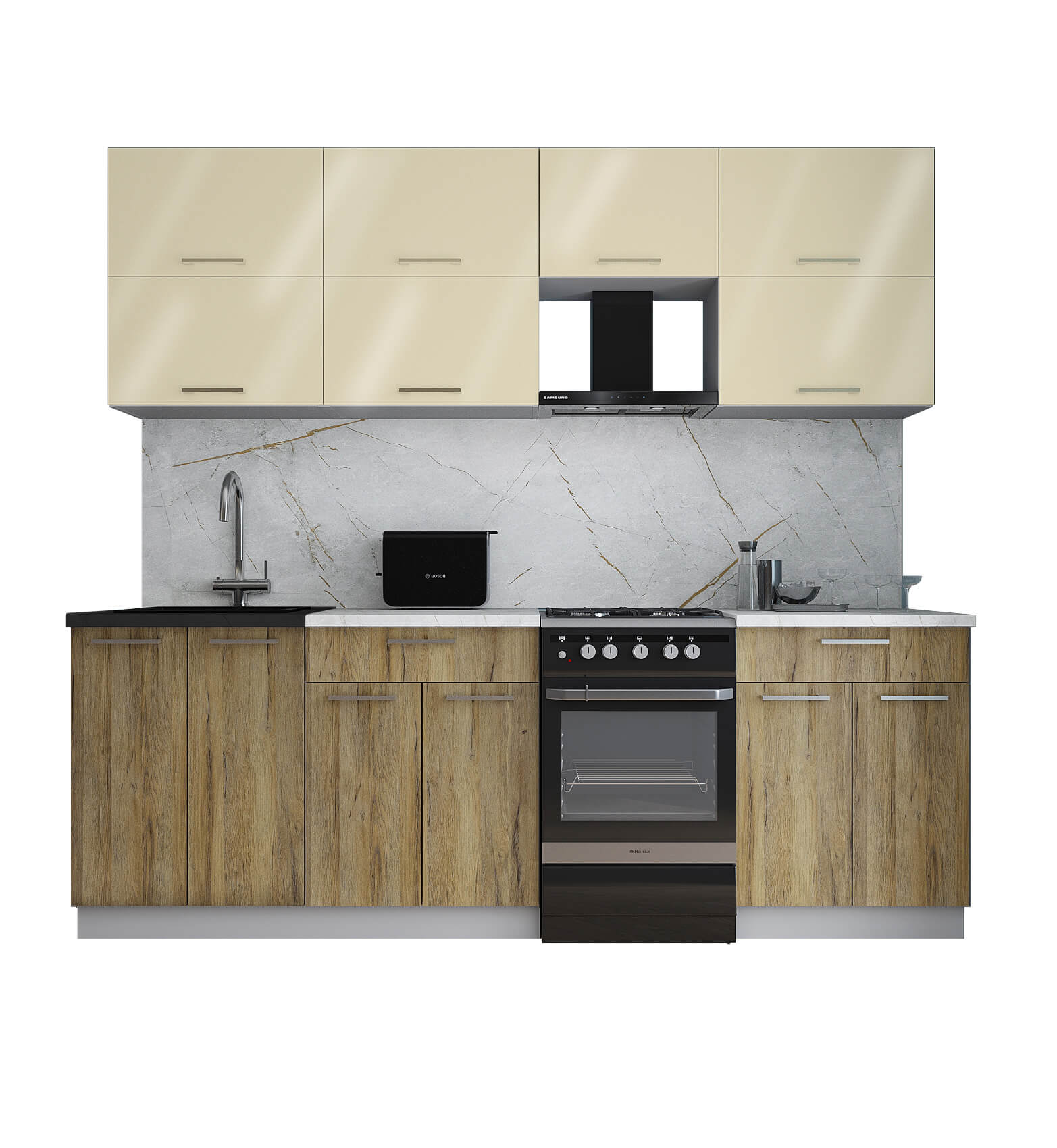 ГОТОВАЯ КУХНЯ ГЛОСС 50-23 (ВАНИЛЬ ГЛЯНЕЦ/ ДУБ ВОТАН) - Yuta.by