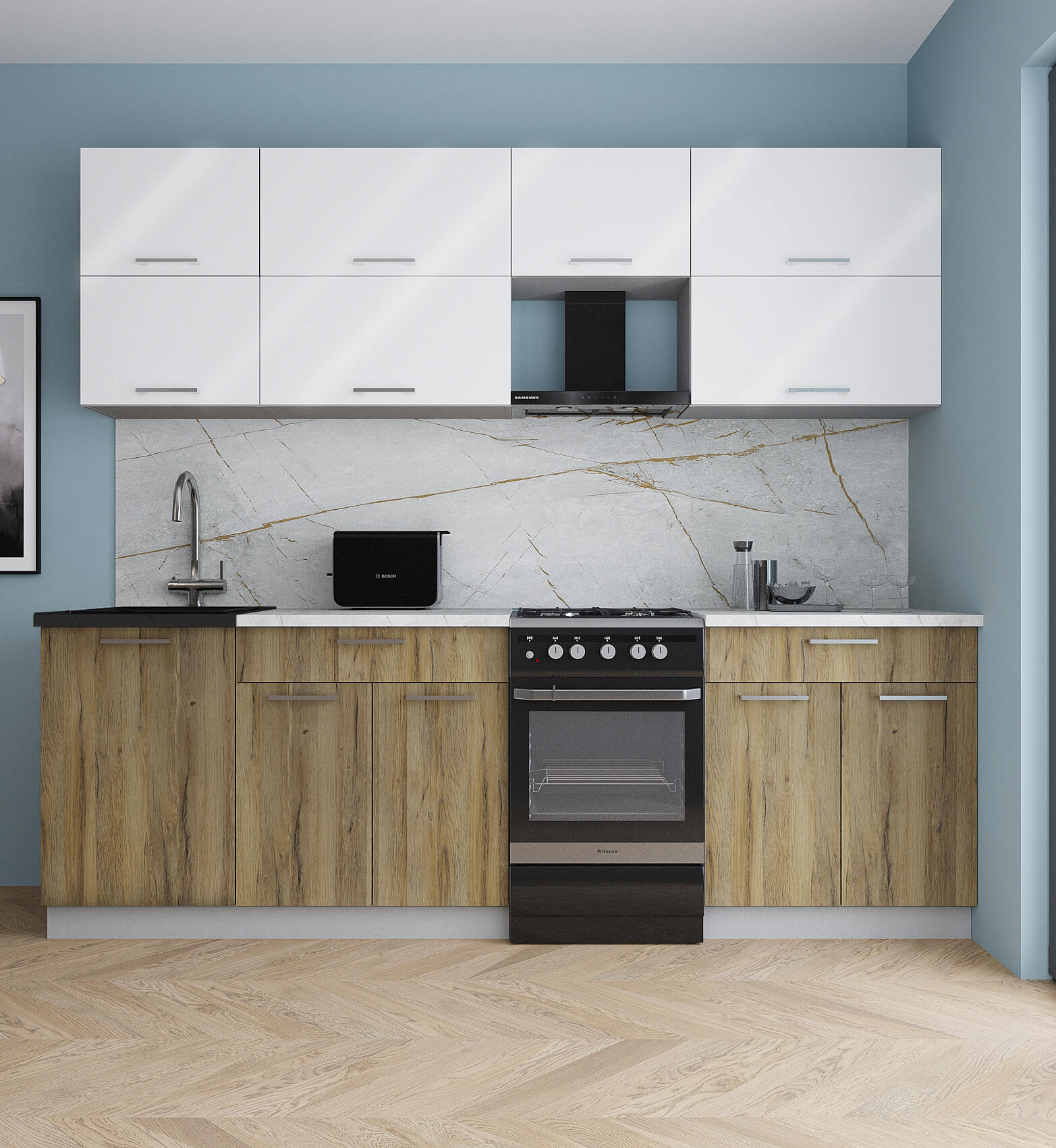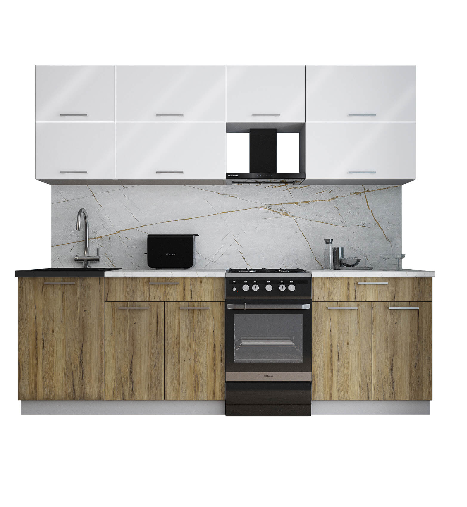 ГОТОВАЯ КУХНЯ ГЛОСС 50-24 (БЕЛЫЙ ГЛЯНЕЦ/ ДУБ ВОТАН) - Yuta.by