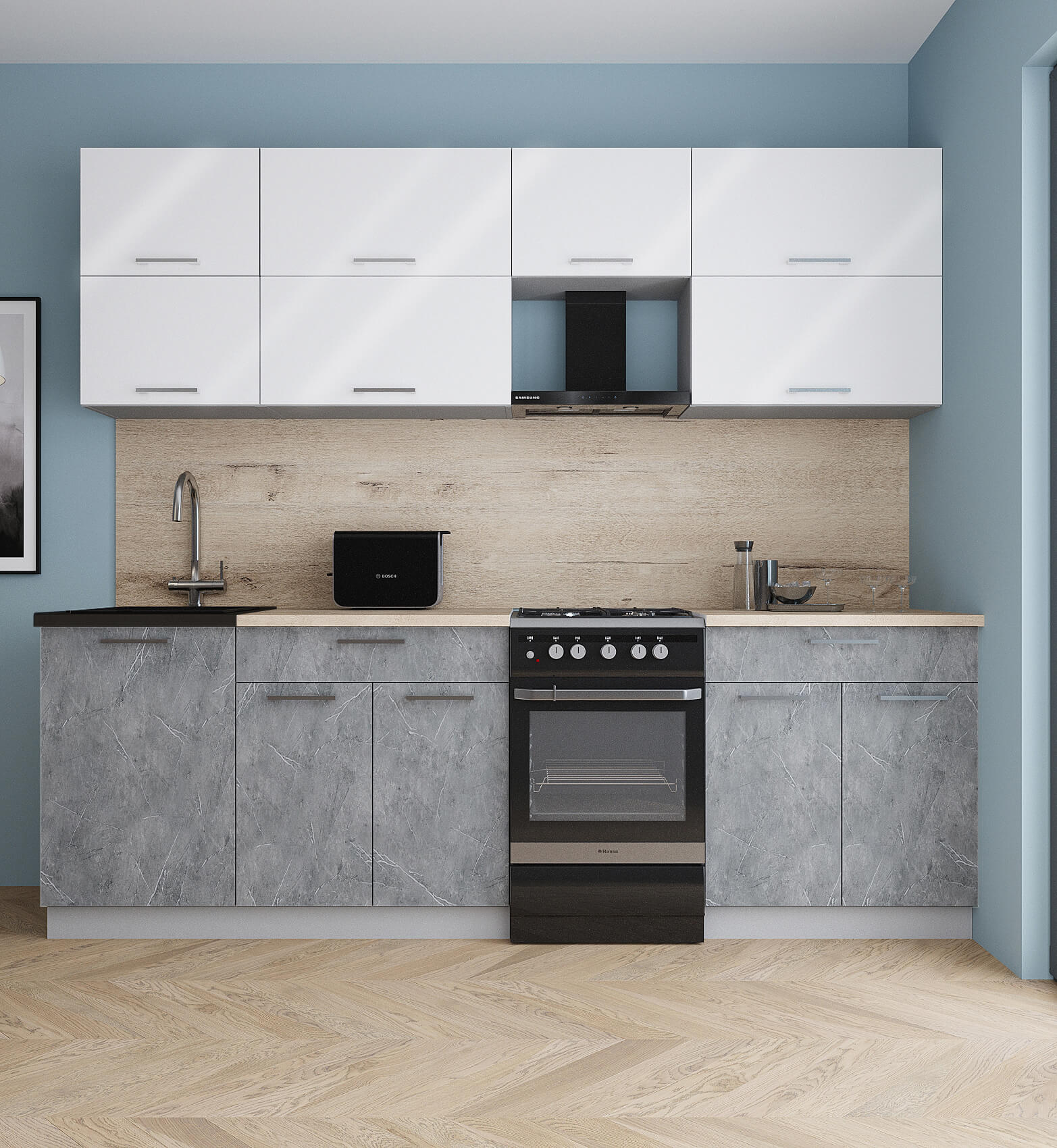 Цвет верхних фасадов кухни