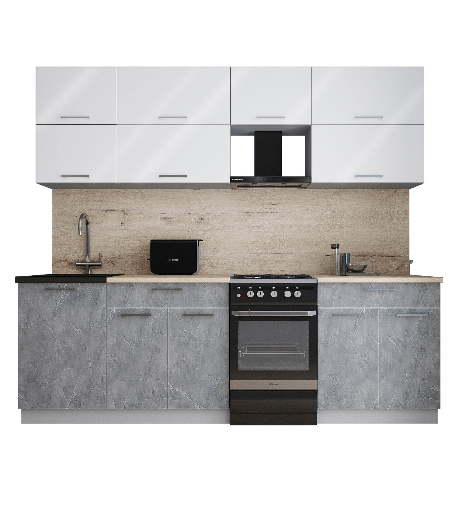 ГОТОВАЯ КУХНЯ ГЛОСС 50-24 (БЕЛЫЙ ГЛЯНЕЦ/ КЕРАМИКА) - Yuta.by