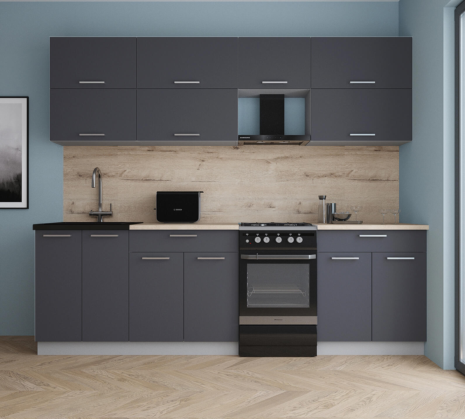 ГОТОВАЯ КУХНЯ ГЛОСС 50-25 (ГРАФИТ СОФТ/ ГРАФИТ СОФТ) - Yuta.by