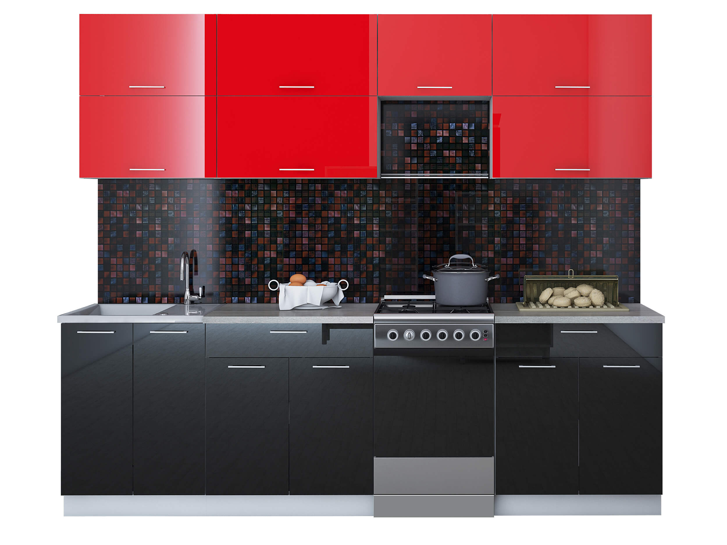 ГОТОВАЯ КУХНЯ ГЛОСС 50-25 (КРАСНЫЙ/ ЧЕРНЫЙ) - Yuta.by