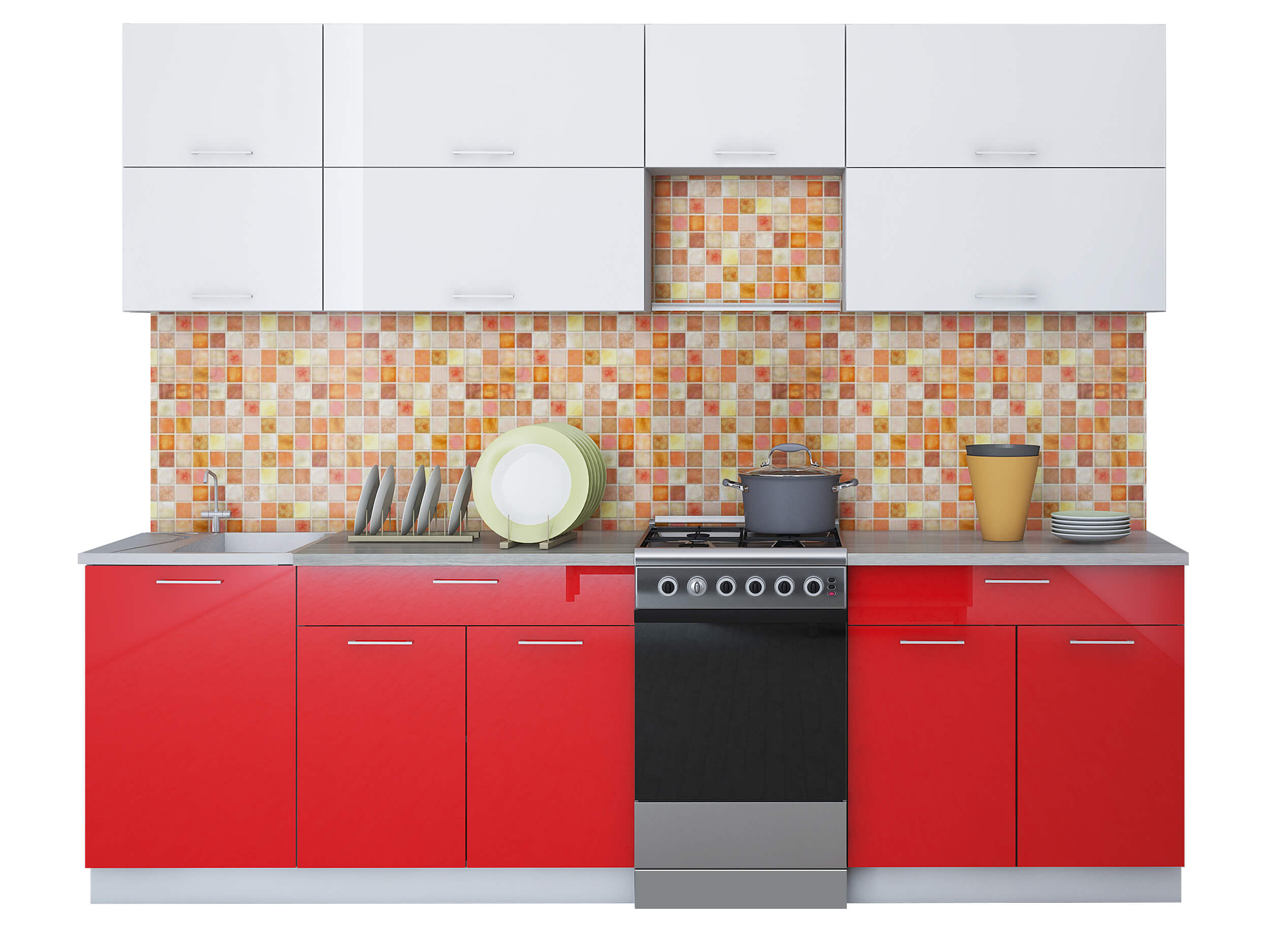 ГОТОВАЯ КУХНЯ ГЛОСС 50-26 (БЕЛЫЙ/ КРАСНЫЙ) - Yuta.by