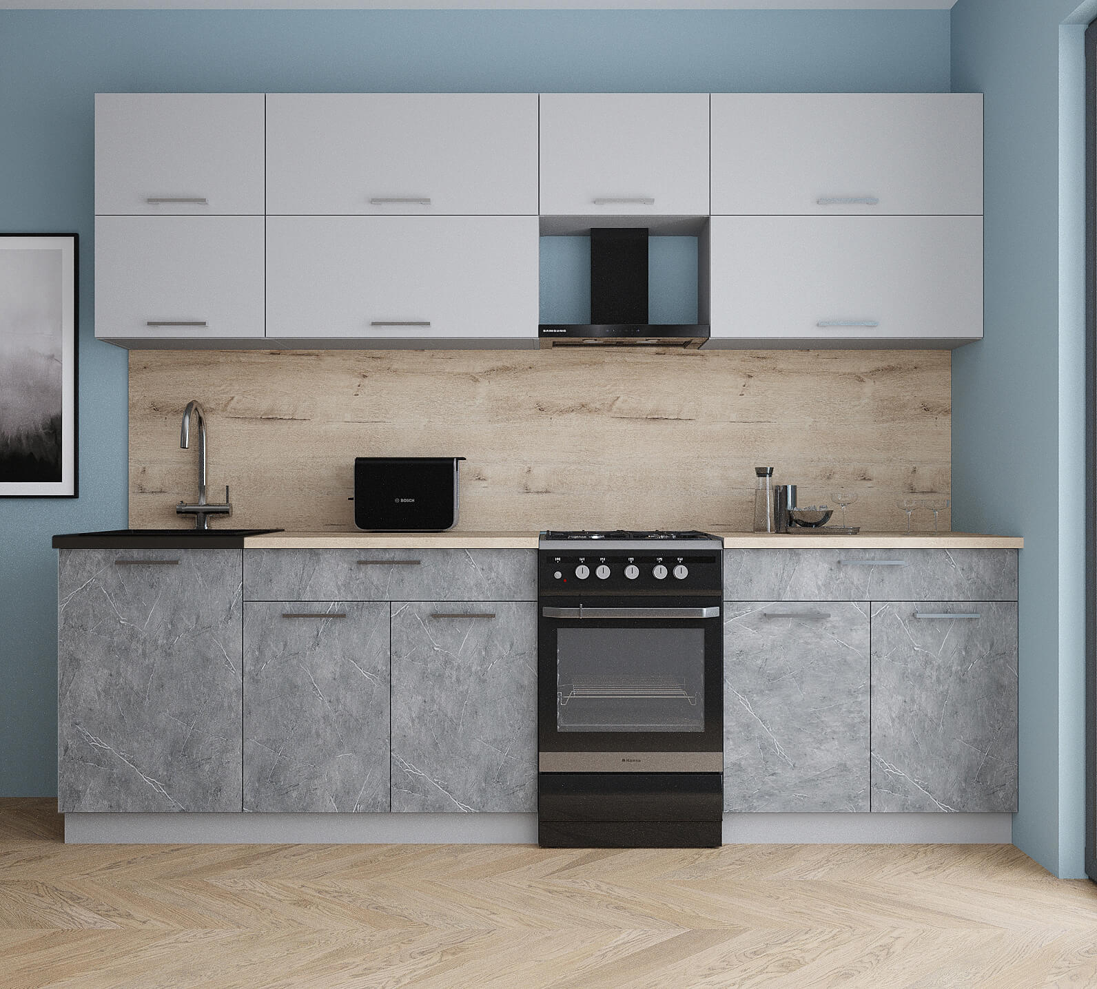 ГОТОВАЯ КУХНЯ ГЛОСС 50-26 (ПЕПЕЛ СОФТ/ КЕРАМИКА)