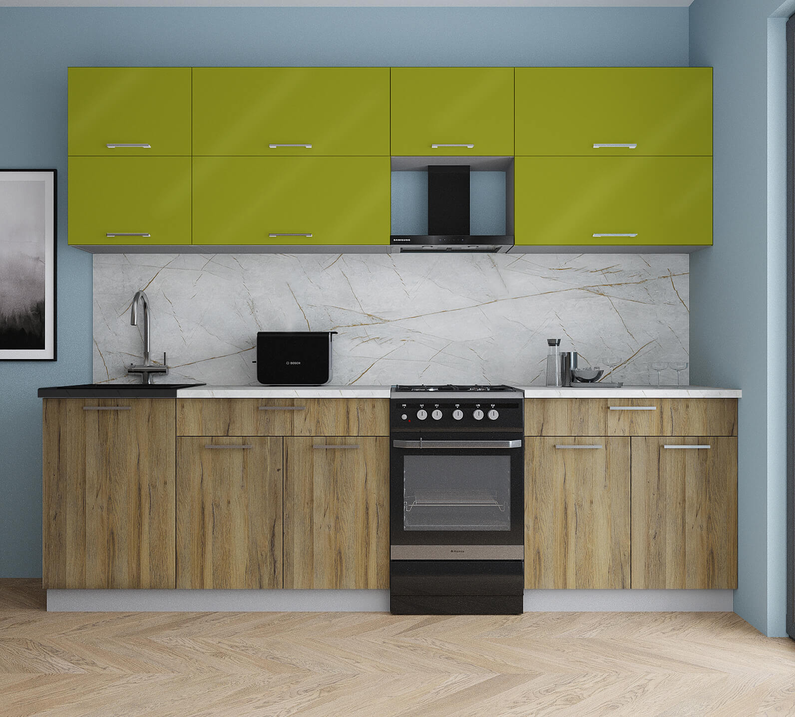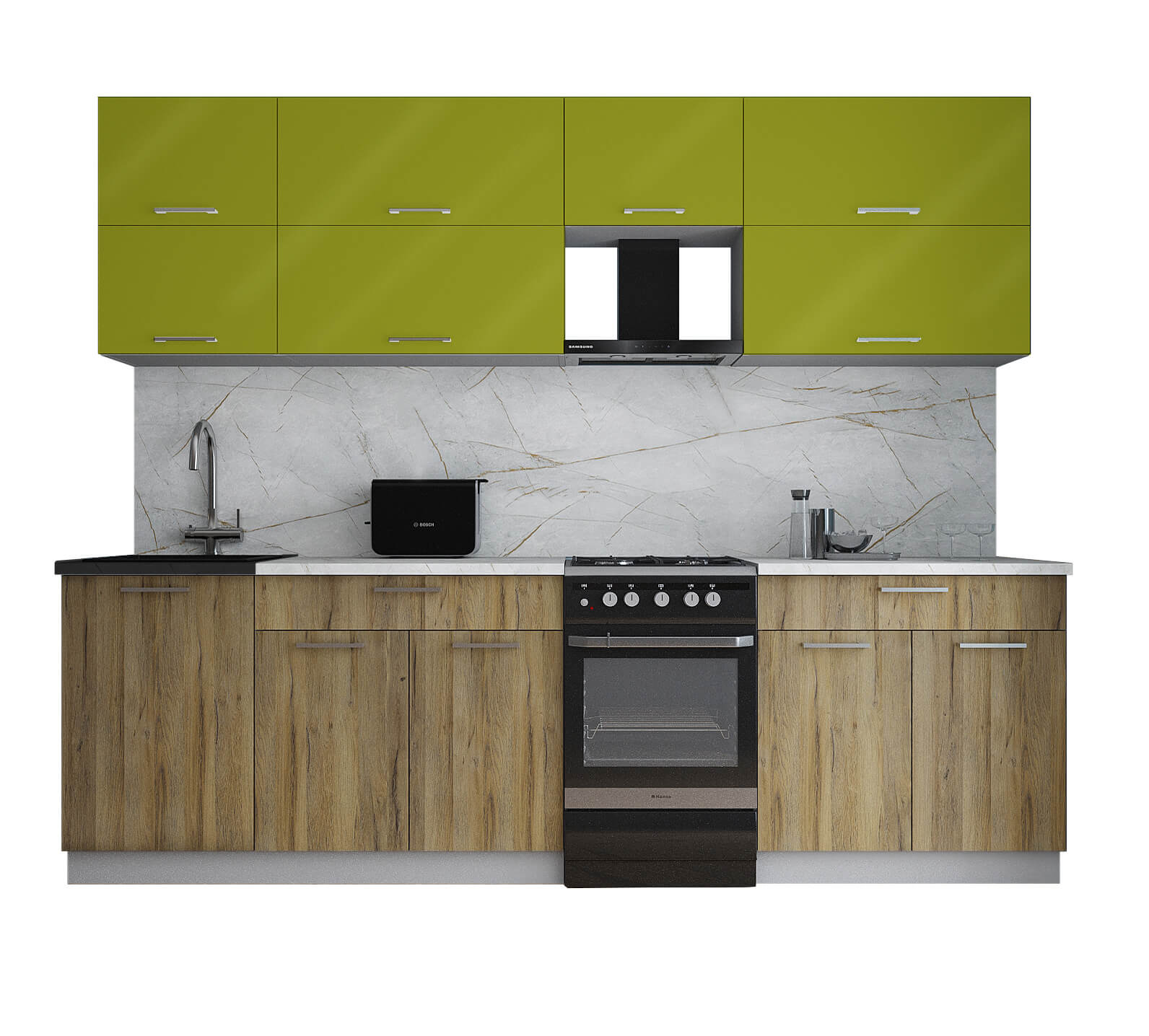 ГОТОВАЯ КУХНЯ ГЛОСС 50-26 (ЯБЛОКО ГЛЯНЕЦ/ ДУБ ВОТАН) - Yuta.by