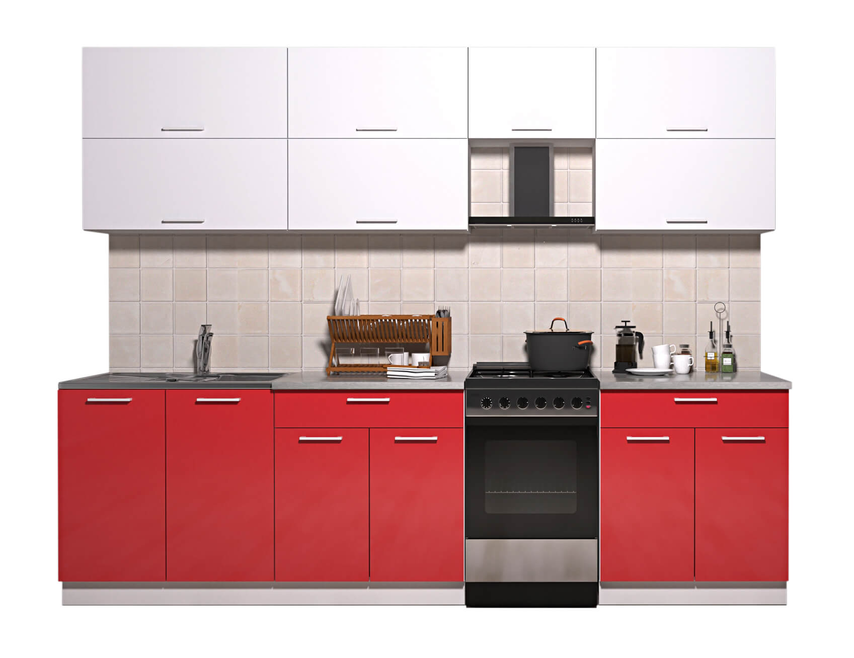 ГОТОВАЯ КУХНЯ ГЛОСС 50-27 (БЕЛЫЙ/ КРАСНЫЙ) - Yuta.by