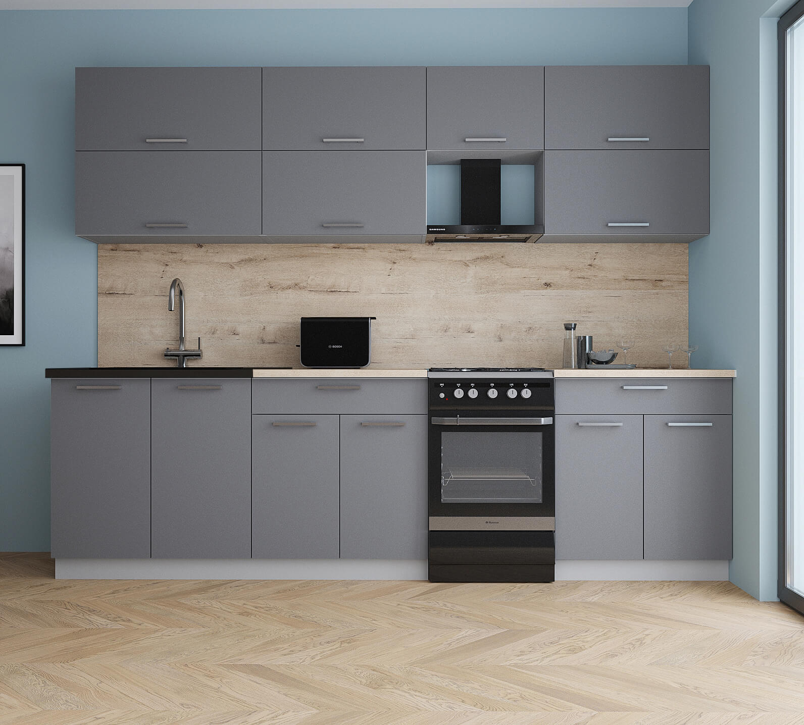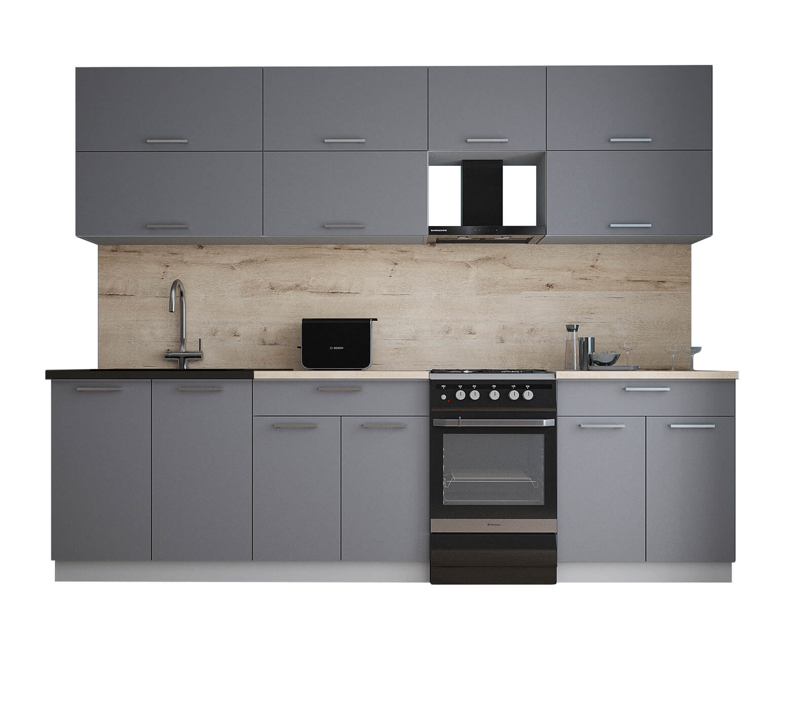 ГОТОВАЯ КУХНЯ ГЛОСС 50-27 (СЕРЫЙ СОФТ/ СЕРЫЙ СОФТ) - Yuta.by