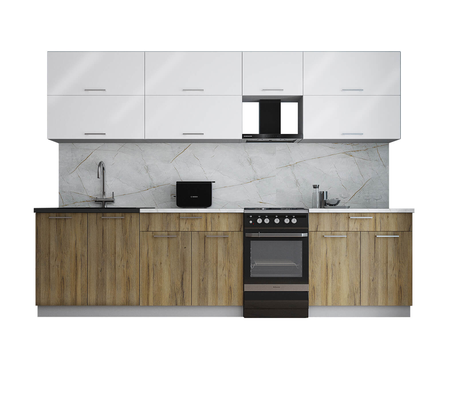 ГОТОВАЯ КУХНЯ ГЛОСС 50-29 (БЕЛЫЙ ГЛЯНЕЦ/ ДУБ ВОТАН) - Yuta.by