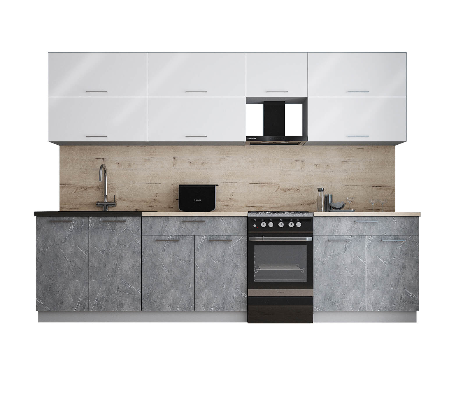ГОТОВАЯ КУХНЯ ГЛОСС 50-29 (БЕЛЫЙ ГЛЯНЕЦ/ КЕРАМИКА) - Yuta.by