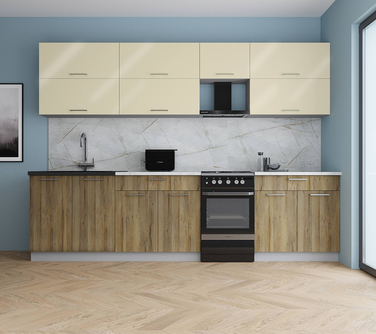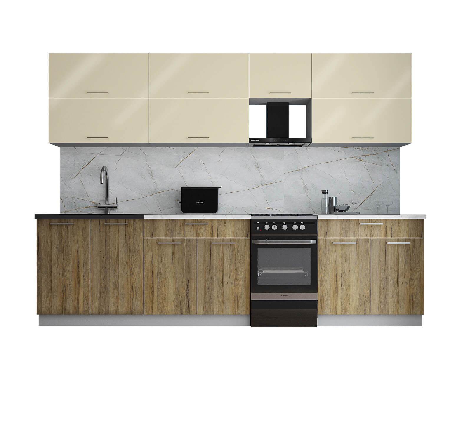 ГОТОВАЯ КУХНЯ ГЛОСС 50-29 (ВАНИЛЬ ГЛЯНЕЦ/ ДУБ ВОТАН) - Yuta.by