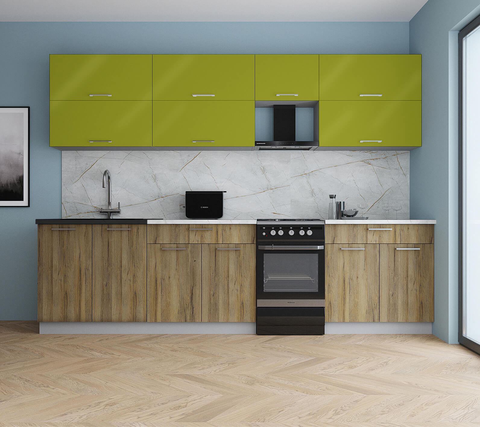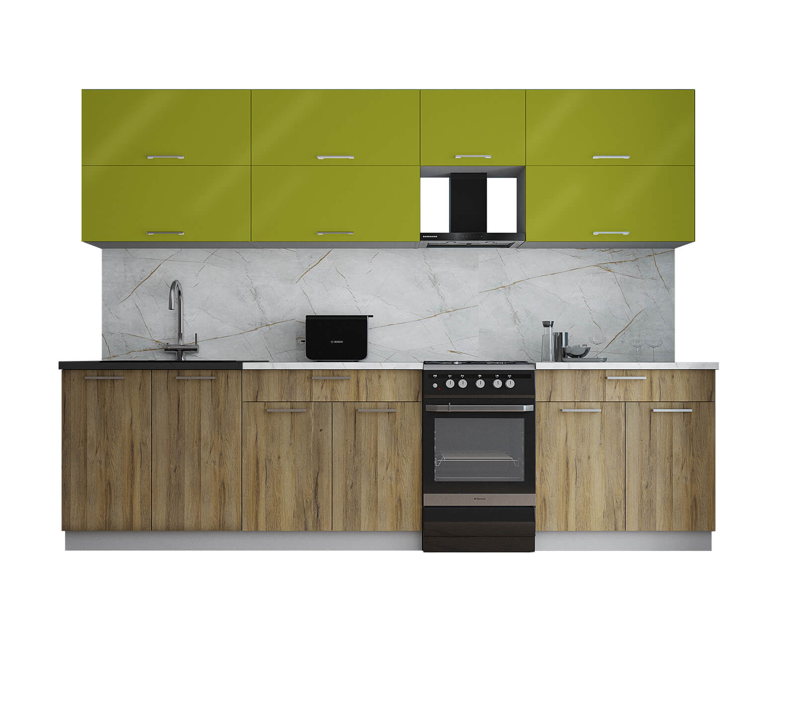 ГОТОВАЯ КУХНЯ ГЛОСС 50-29 (ЯБЛОКО ГЛЯНЕЦ/ ДУБ ВОТАН) - Yuta.by