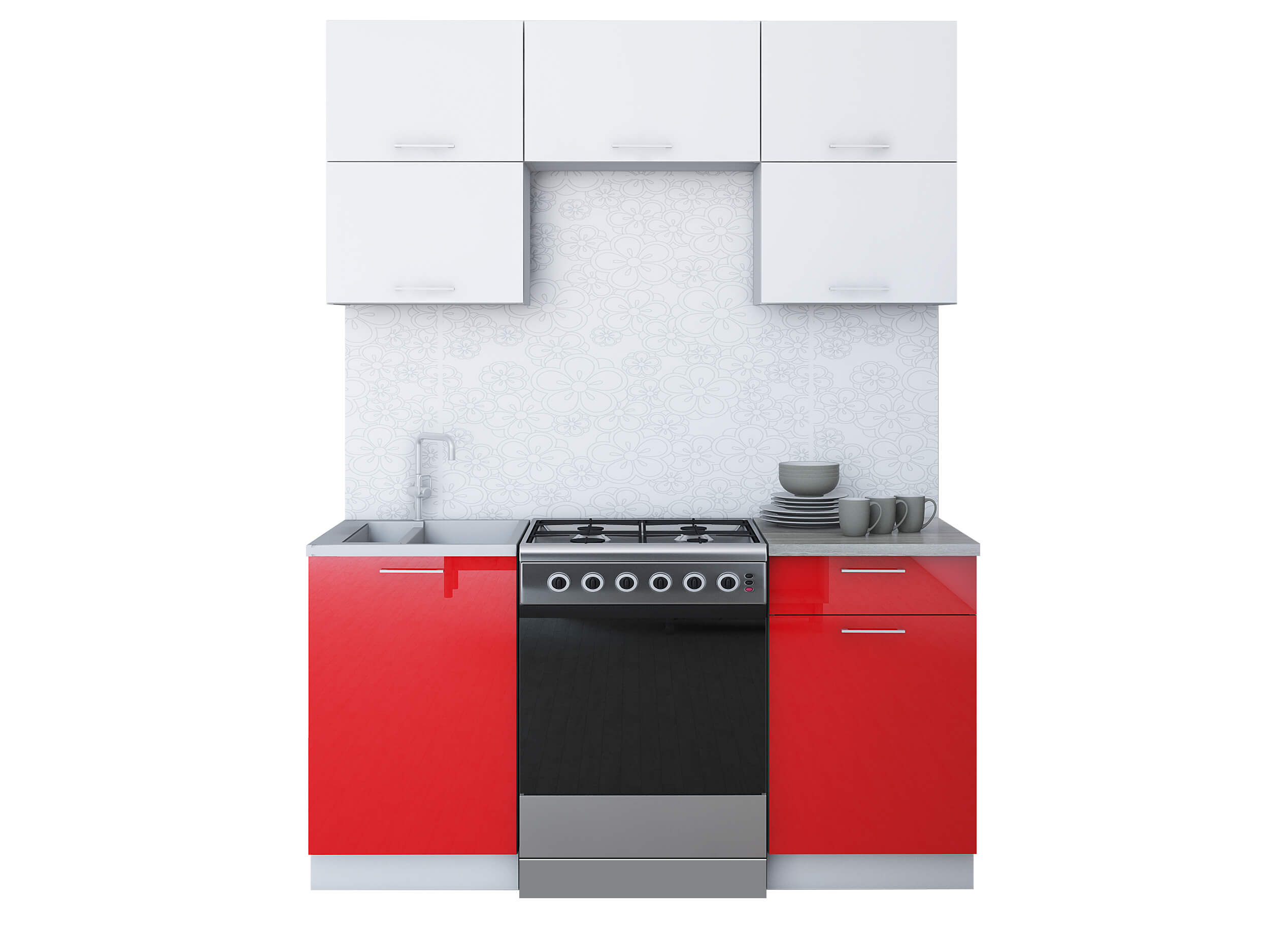 ГОТОВАЯ КУХНЯ ГЛОСС 60-16 (БЕЛЫЙ/ КРАСНЫЙ) - Yuta.by