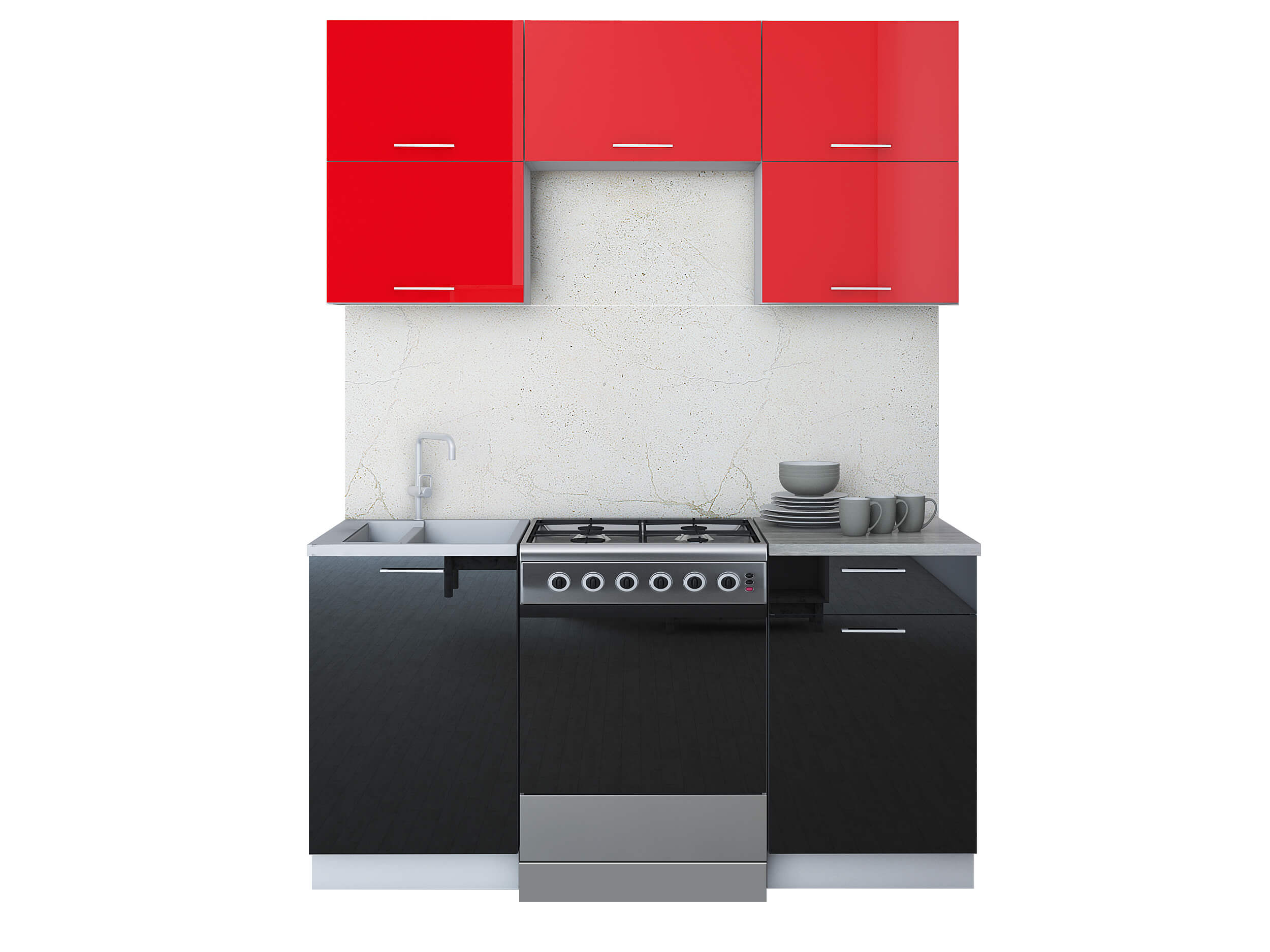 ГОТОВАЯ КУХНЯ ГЛОСС 60-16 (КРАСНЫЙ/ ЧЕРНЫЙ) - Yuta.by