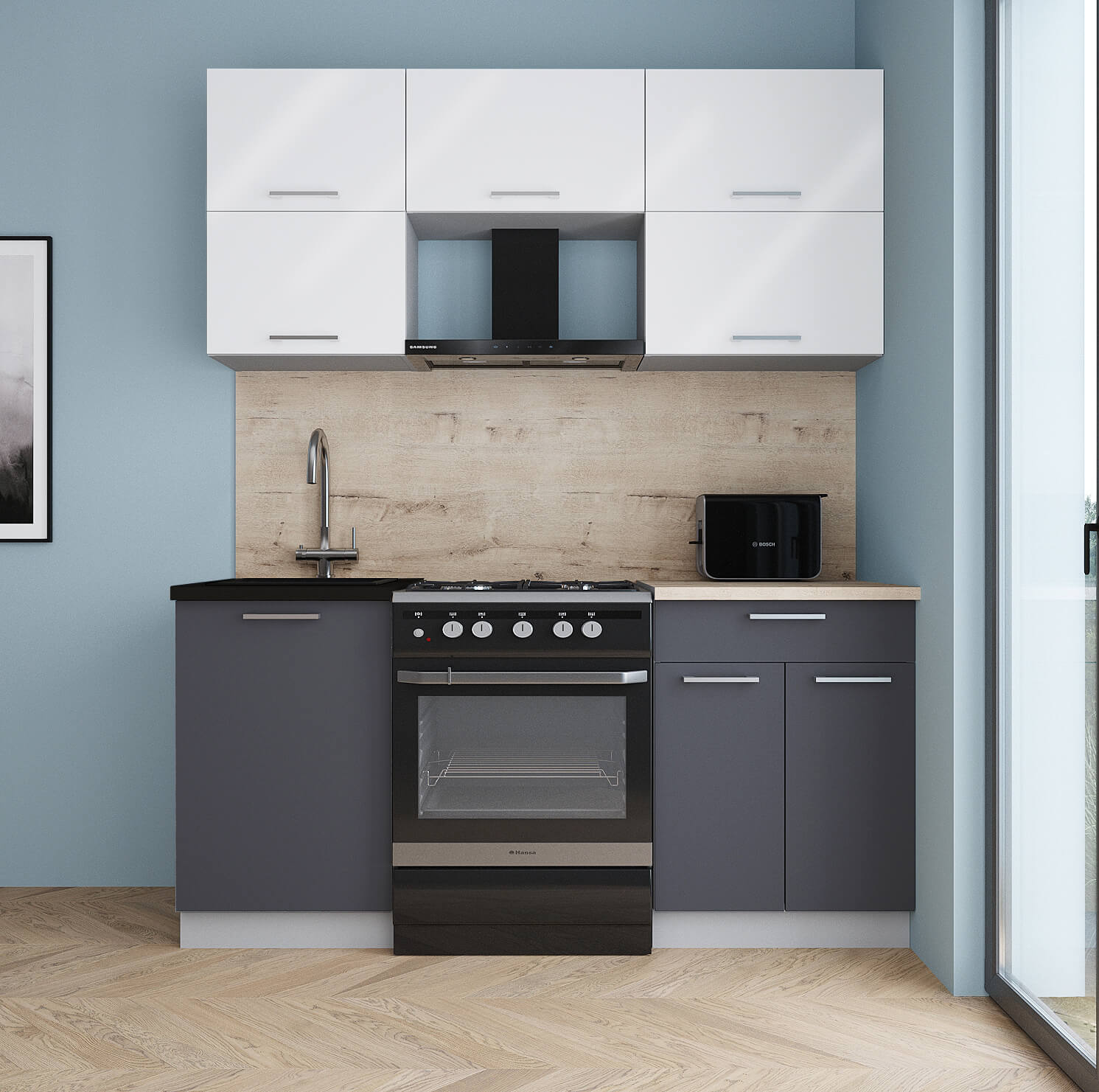 ГОТОВАЯ КУХНЯ ГЛОСС 60-17 (БЕЛЫЙ ГЛЯНЕЦ/ ГРАФИТ СОФТ) - Yuta.by
