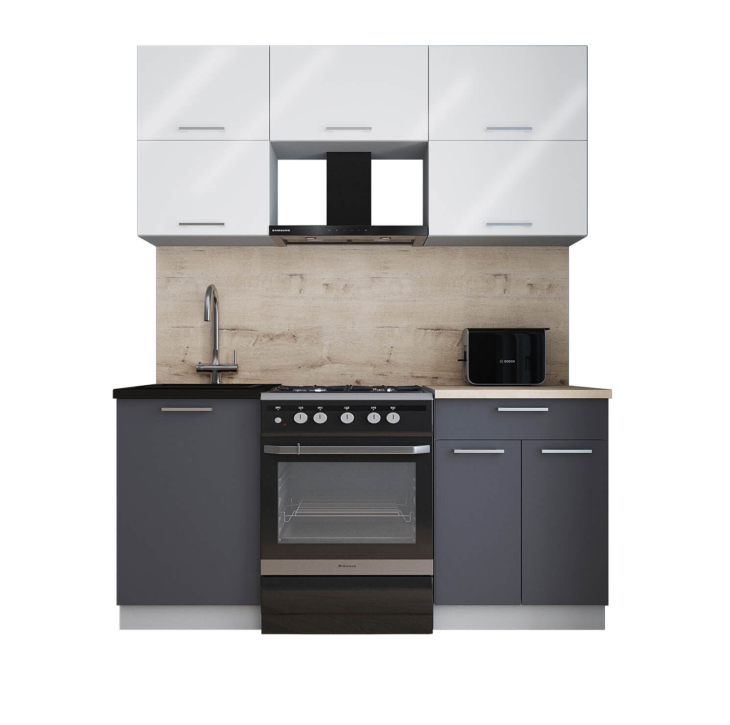 ГОТОВАЯ КУХНЯ ГЛОСС 50-15 (БЕЛЫЙ ГЛЯНЕЦ/ ГРАФИТ СОФТ)