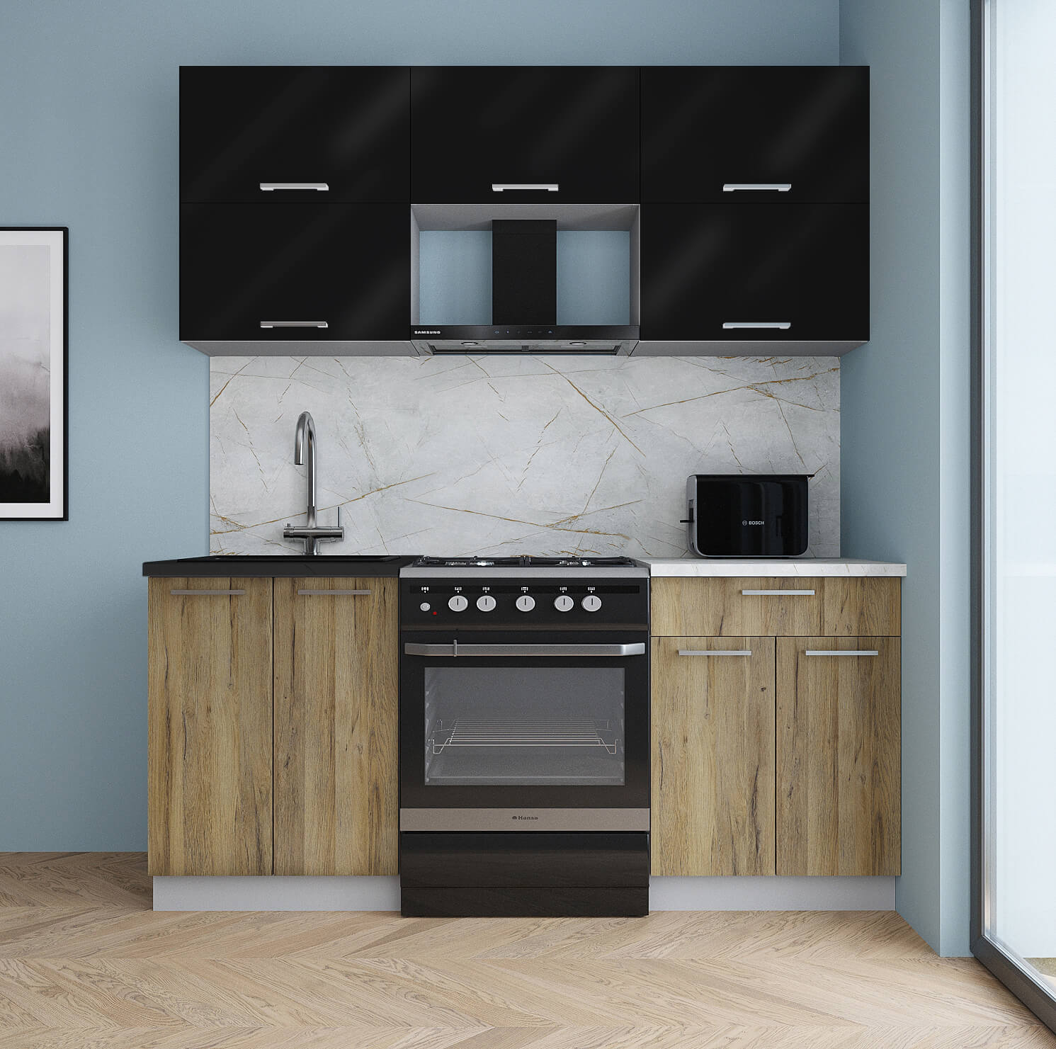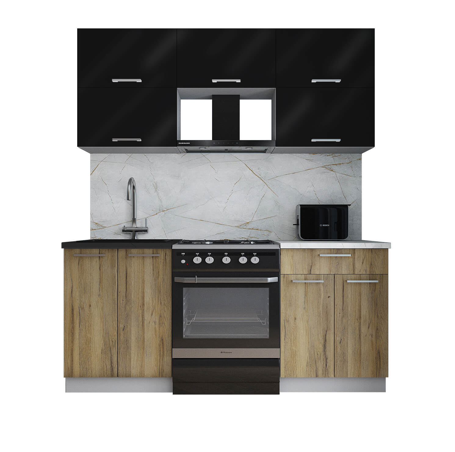 ГОТОВАЯ КУХНЯ ГЛОСС 60-18 (ЧЕРНЫЙ ГЛЯНЕЦ/ ДУБ ВОТАН) - Yuta.by