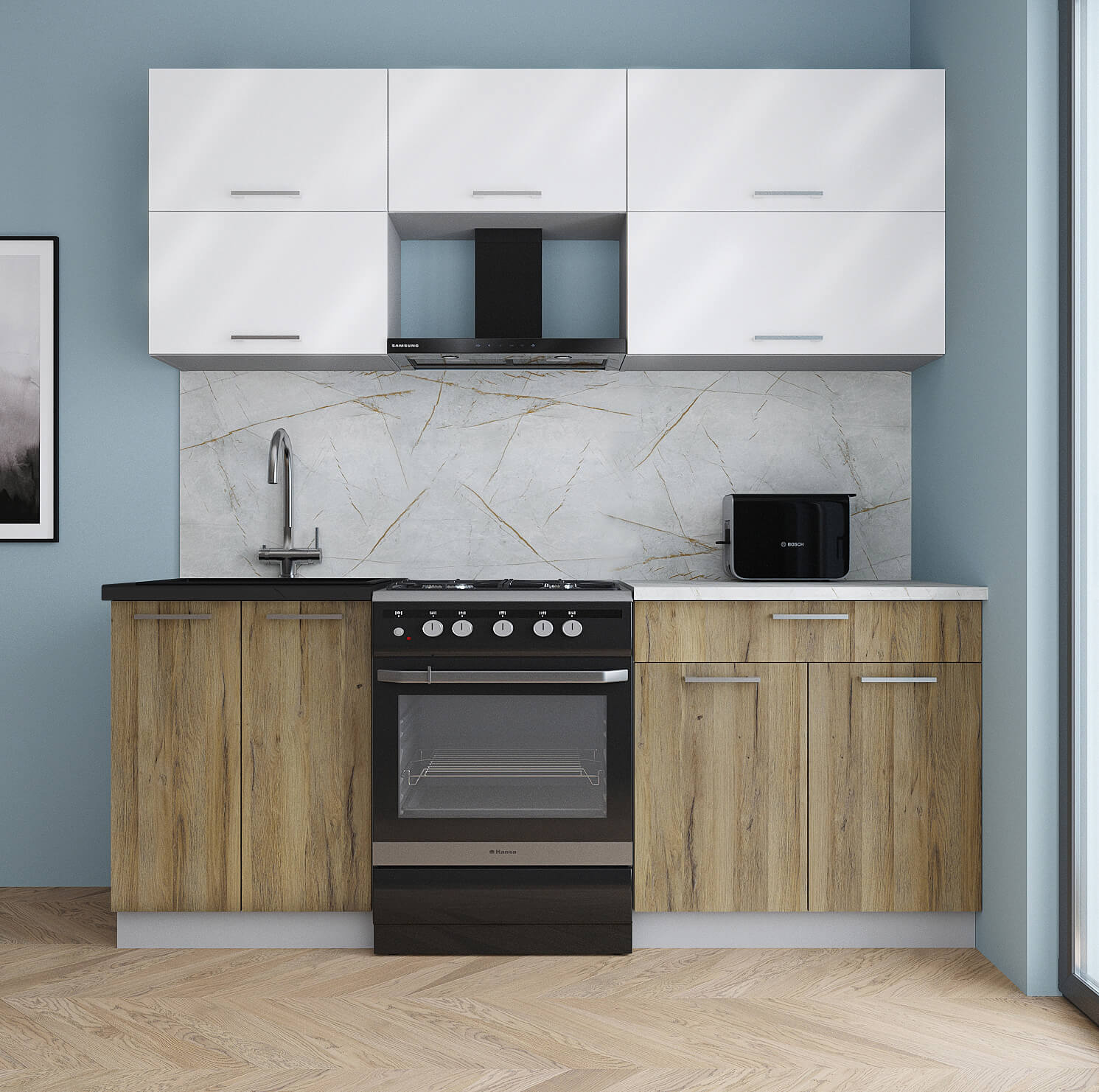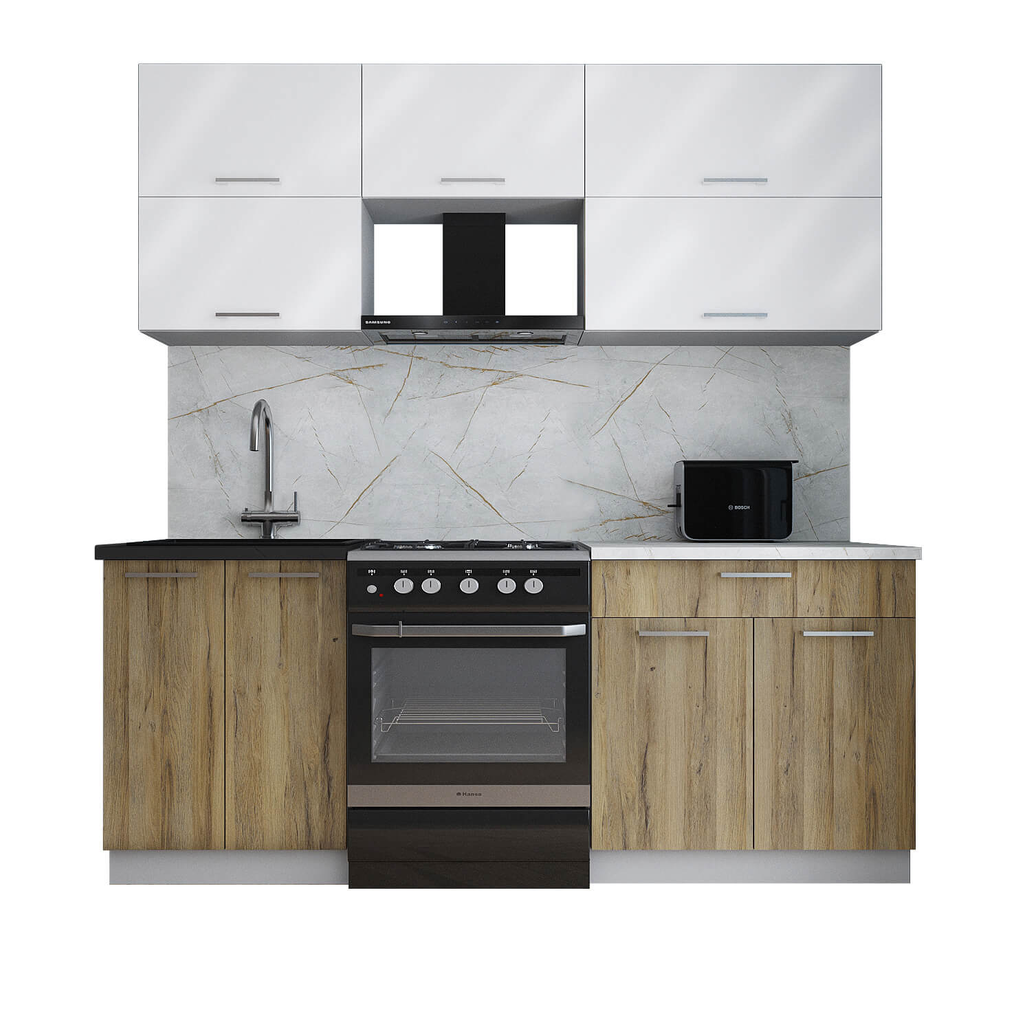 ГОТОВАЯ КУХНЯ ГЛОСС 60-20 (БЕЛЫЙ ГЛЯНЕЦ/ ДУБ ВОТАН) - Yuta.by