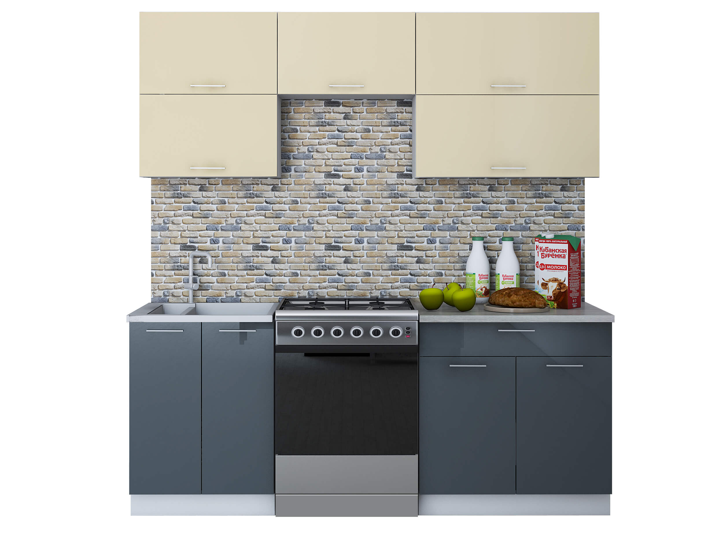 ГОТОВАЯ КУХНЯ ГЛОСС 60-20 (ВАНИЛЬ/ АСФАЛЬТ) - Yuta.by