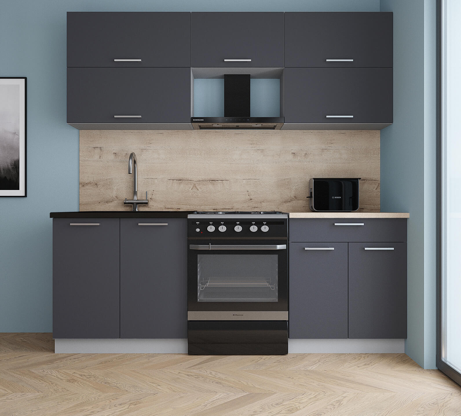 ГОТОВАЯ КУХНЯ ГЛОСС 60-21 (ГРАФИТ СОФТ/ ГРАФИТ СОФТ) - Yuta.by