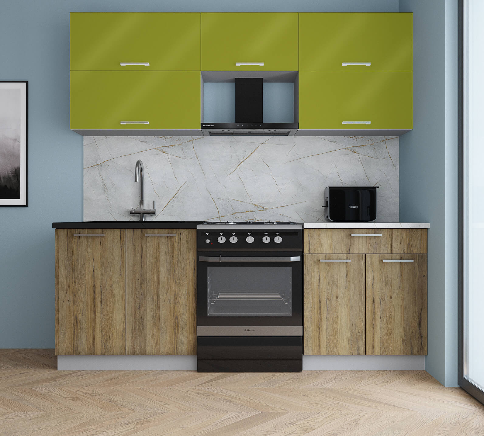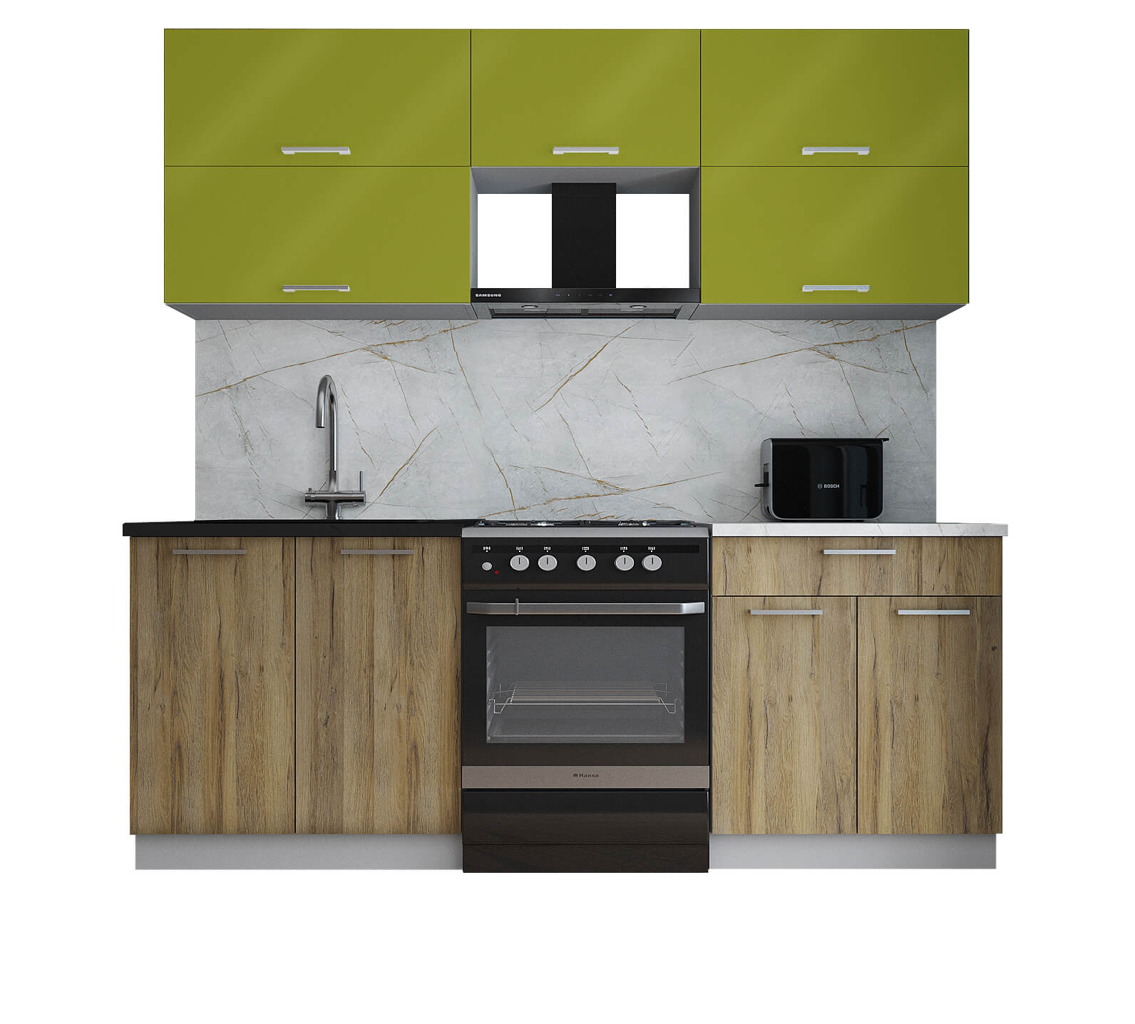 ГОТОВАЯ КУХНЯ ГЛОСС 60-21 (ЯБЛОКО ГЛЯНЕЦ/ ДУБ ВОТАН) - Yuta.by