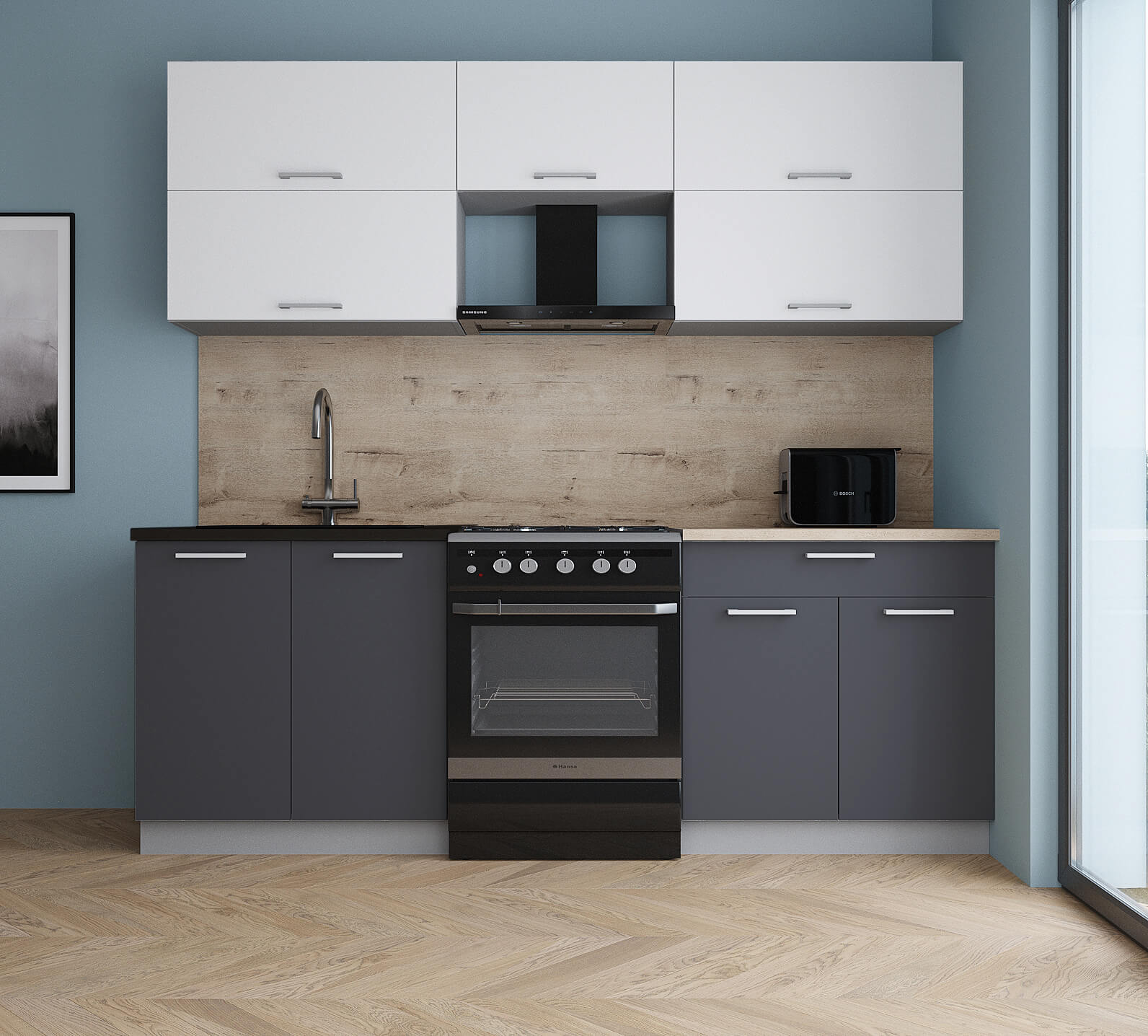 ГОТОВАЯ КУХНЯ ГЛОСС 60-22 (БЕЛЫЙ СОФТ/ ГРАФИТ СОФТ) - Yuta.by