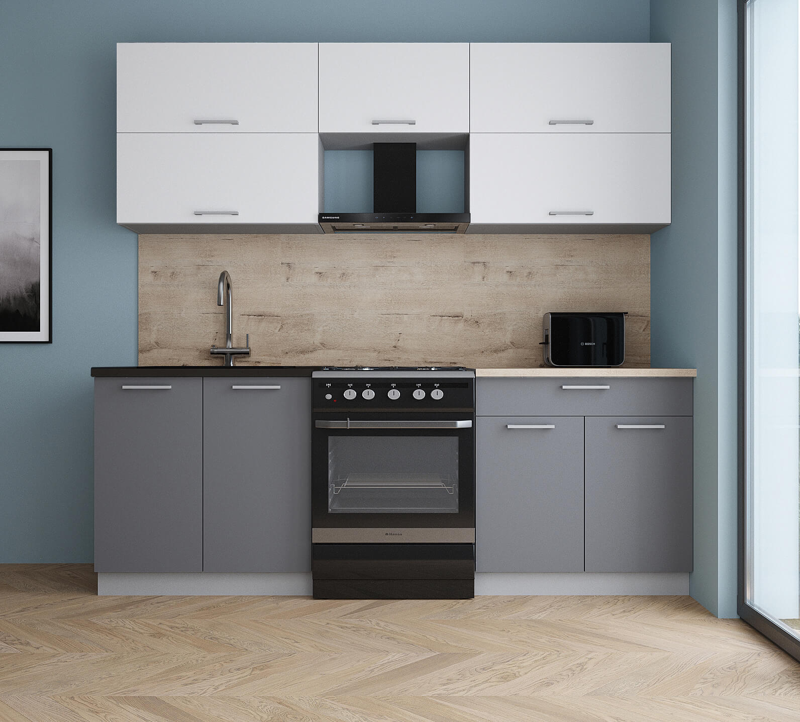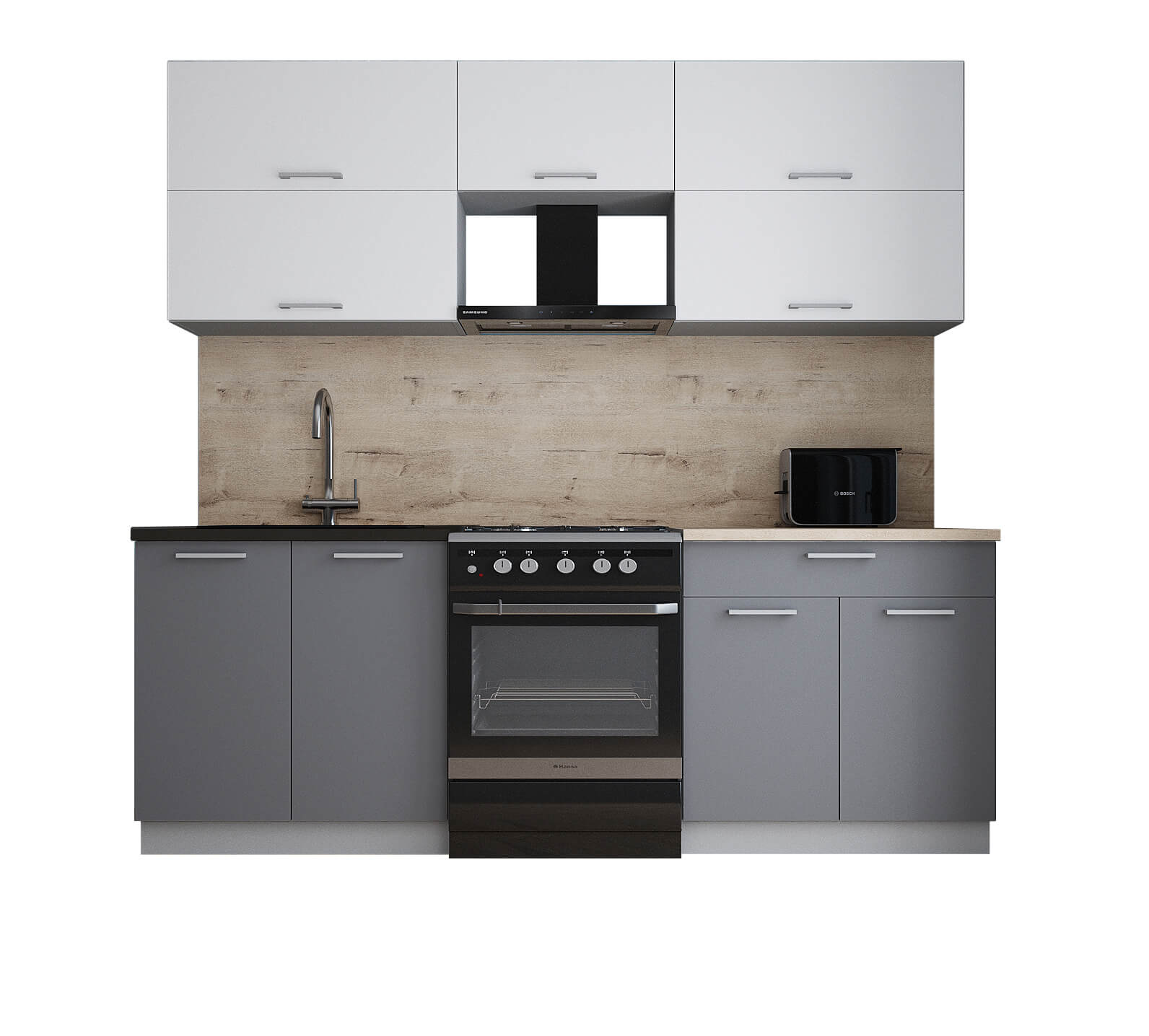ГОТОВАЯ КУХНЯ ГЛОСС 60-22 (БЕЛЫЙ СОФТ/ СЕРЫЙ СОФТ) - Yuta.by