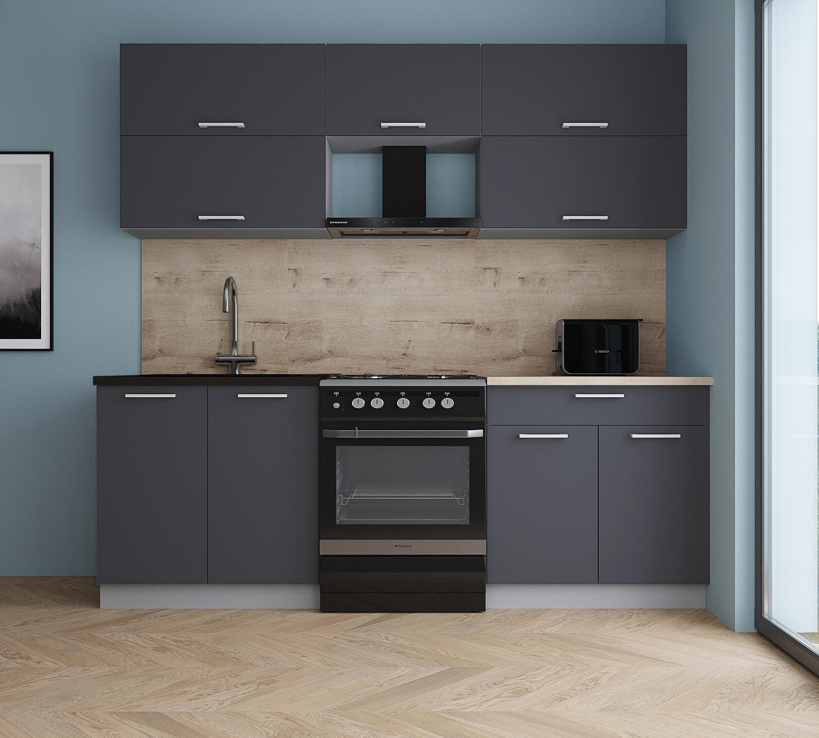ГОТОВАЯ КУХНЯ ГЛОСС 60-22 (ГРАФИТ СОФТ/ ГРАФИТ СОФТ) - Yuta.by