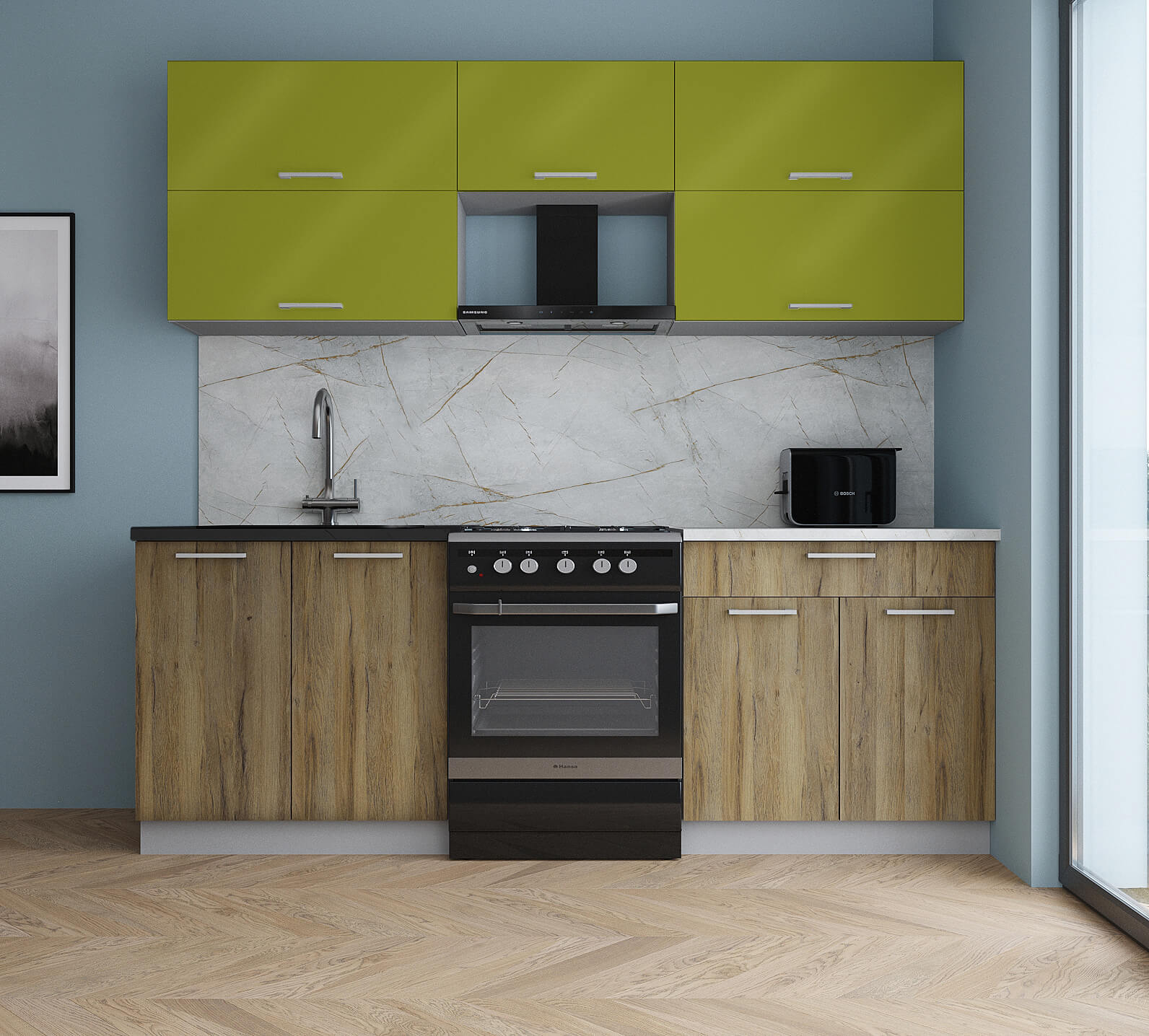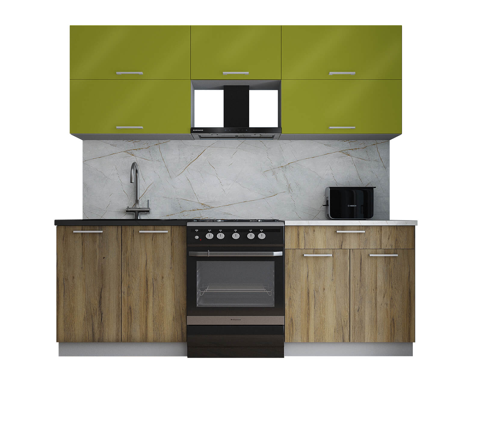 ГОТОВАЯ КУХНЯ ГЛОСС 60-22 (ЯБЛОКО ГЛЯНЕЦ/ ДУБ ВОТАН) - Yuta.by