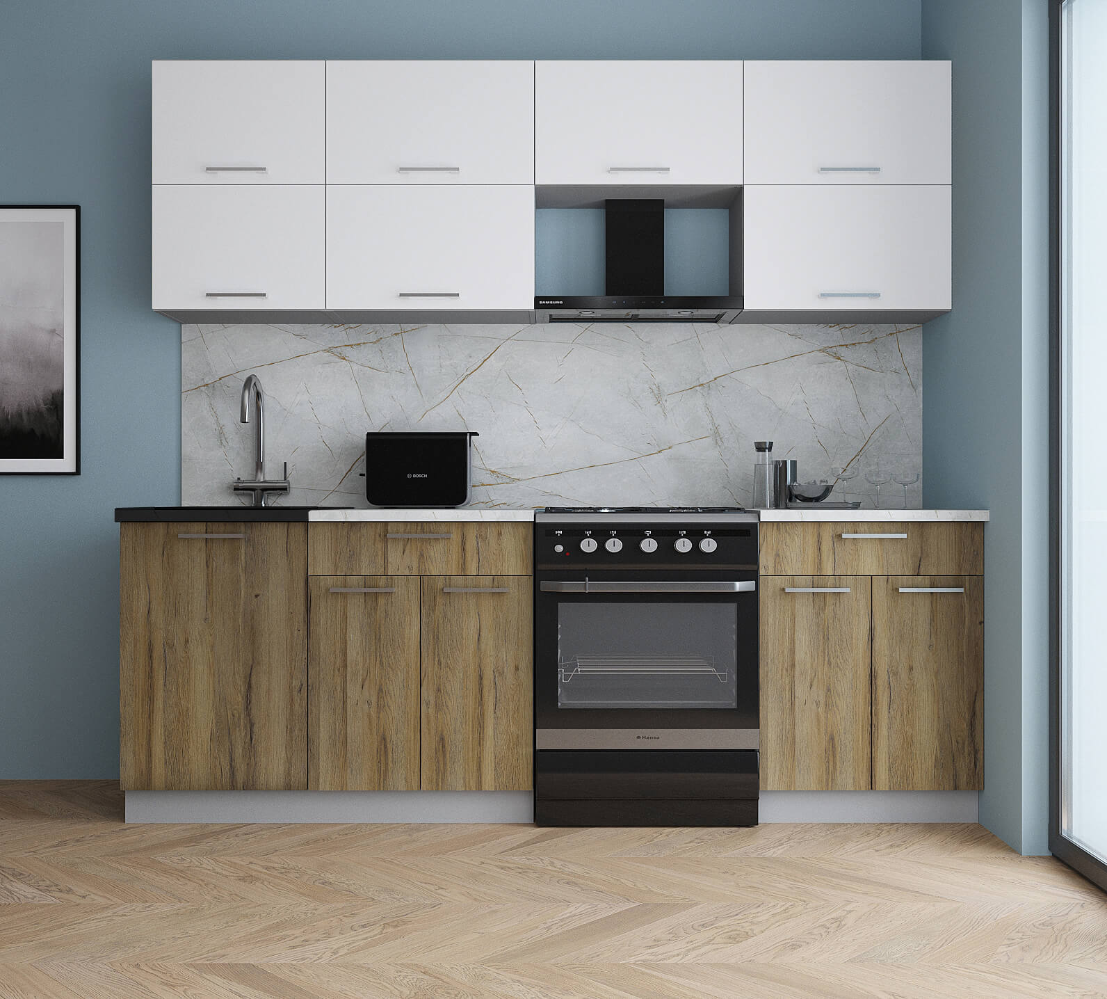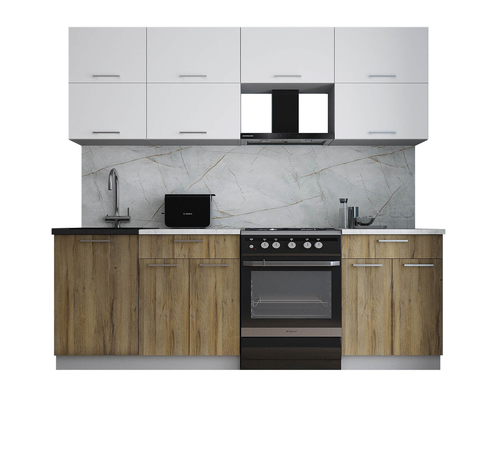 ГОТОВАЯ КУХНЯ ГЛОСС 60-23 (БЕЛЫЙ СОФТ/ ДУБ ВОТАН) - Yuta.by