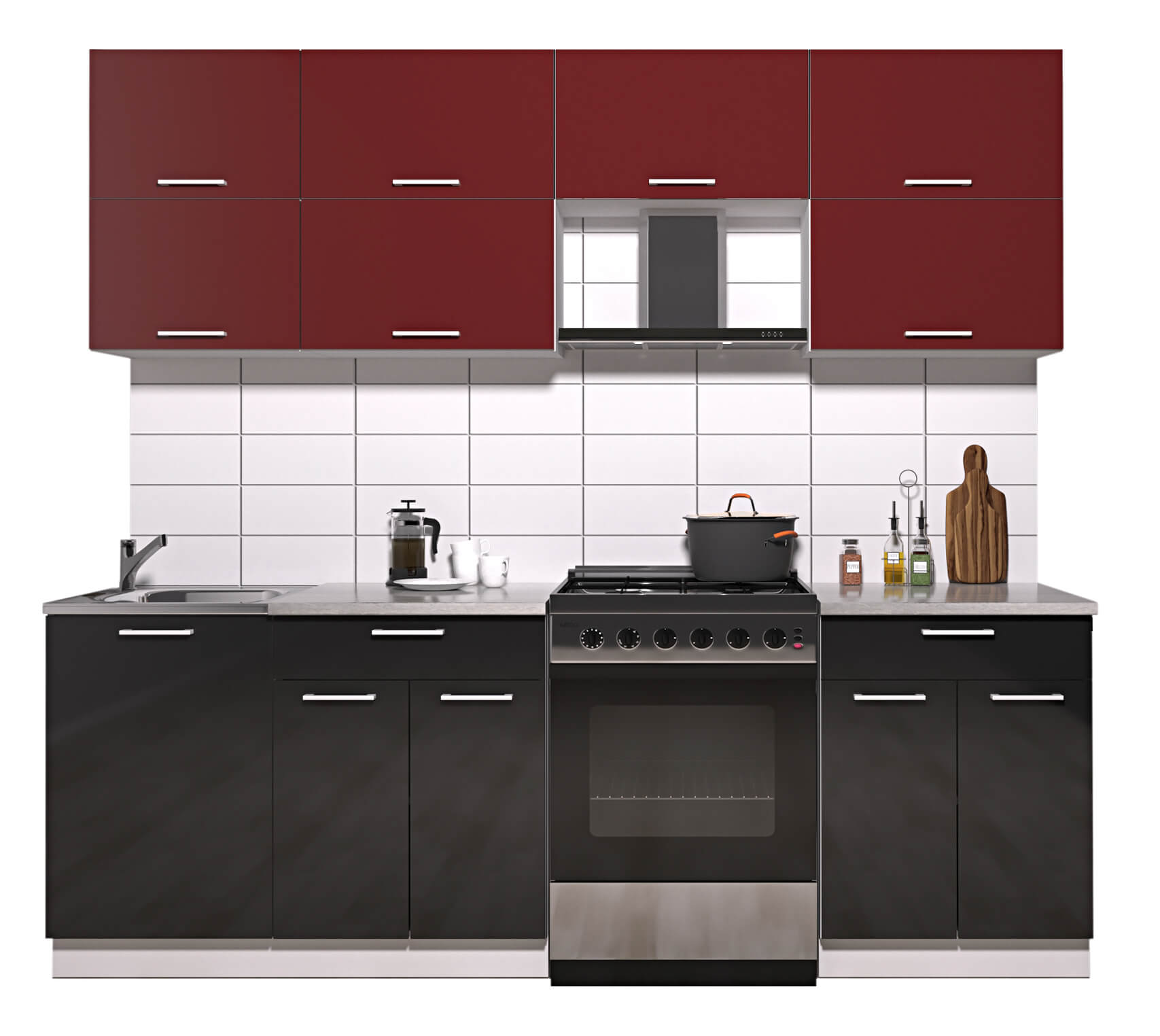 ГОТОВАЯ КУХНЯ ГЛОСС 60-23 (БОРДОВЫЙ/ ЧЕРНЫЙ) - Yuta.by
