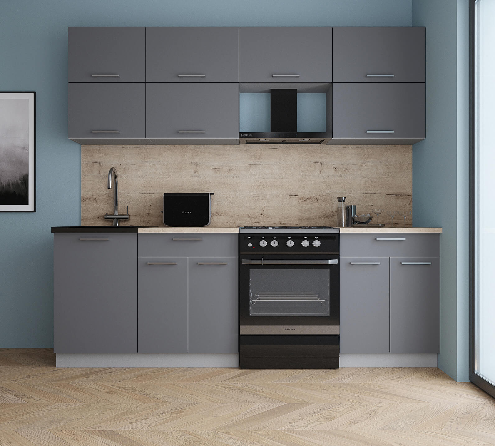 ГОТОВАЯ КУХНЯ ГЛОСС 60-23 (СЕРЫЙ СОФТ/ СЕРЫЙ СОФТ) - Yuta.by
