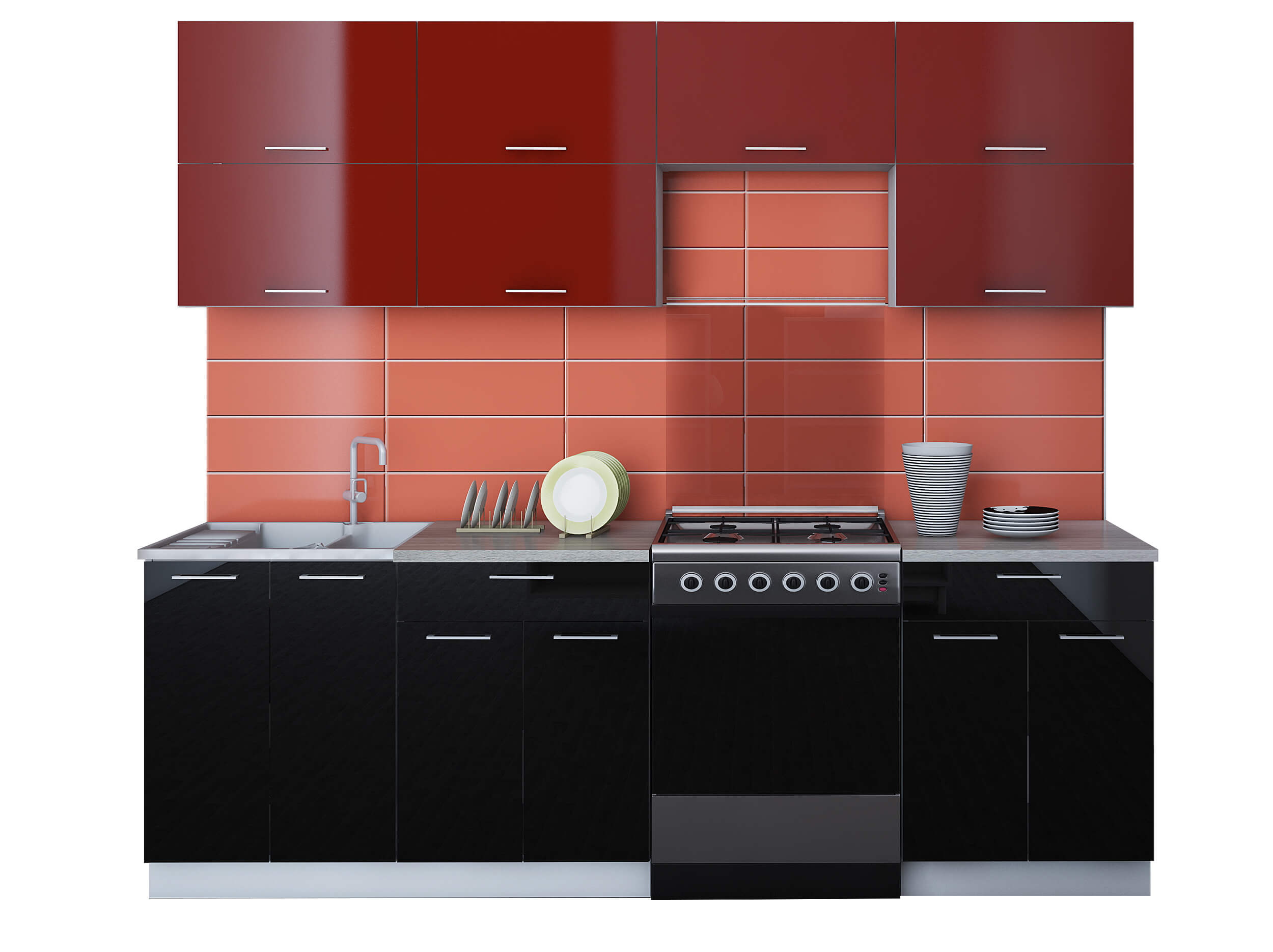 ГОТОВАЯ КУХНЯ ГЛОСС 60-24 (БОРДОВЫЙ/ ЧЕРНЫЙ) - Yuta.by